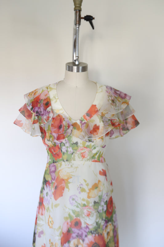 1960s/70s Vintage Handmade Floral Ruffle Tie Back Maxi Dress