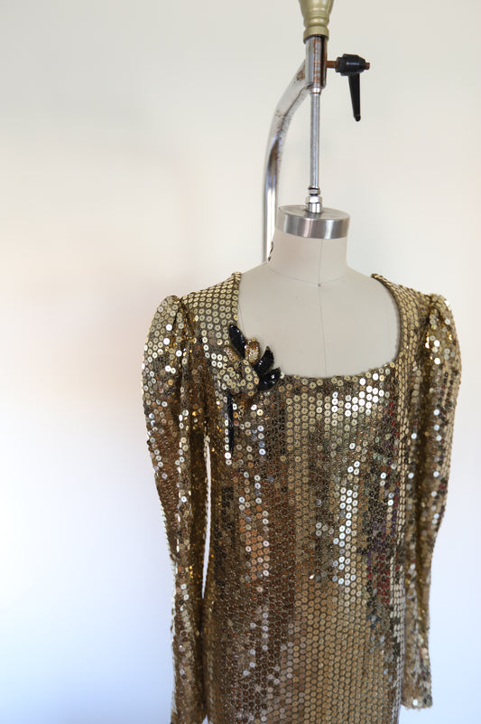1970s Vintage Puff Sleeve Maxi Dress