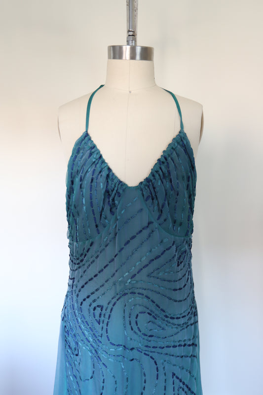 Y2k Vintage Sheer Silk Stitch Halter Dress