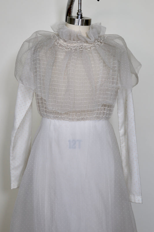 1960's Swiss Dot Pleated Ruffle Collar Prairie Dress