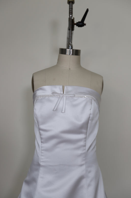 1990's Strapless Bridal Bow Gown Button Back With Train