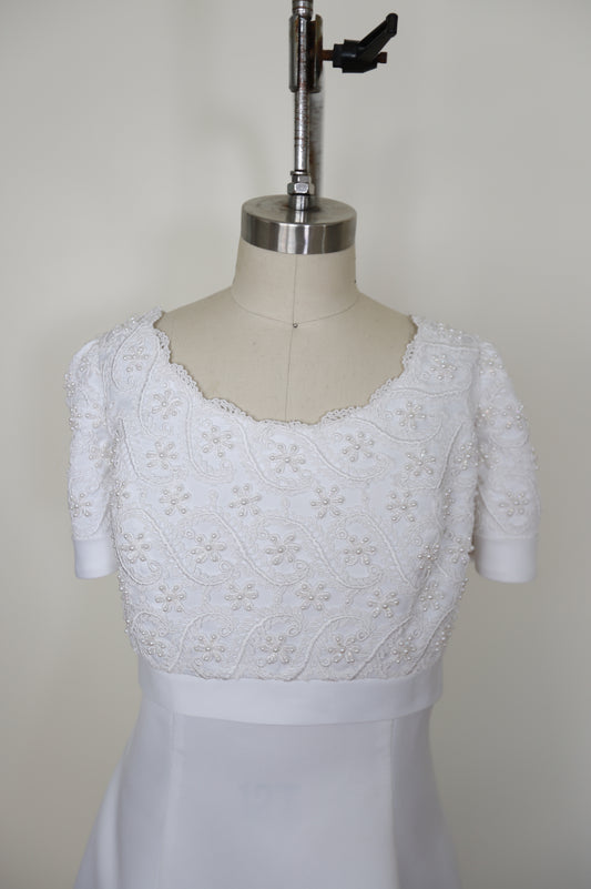 1990's Empire Waist Short Sleeve Lace A Line Gown