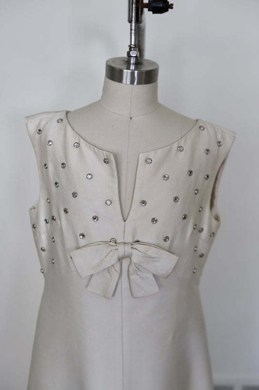 1960's Crepe Longsleeve Dress With Detachable Bow Waist