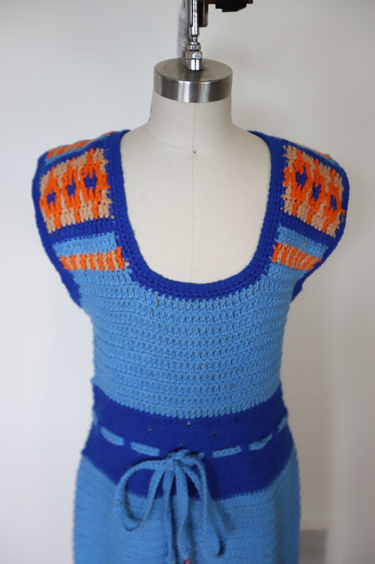 1960s Knit Crochet Blanket Dress
