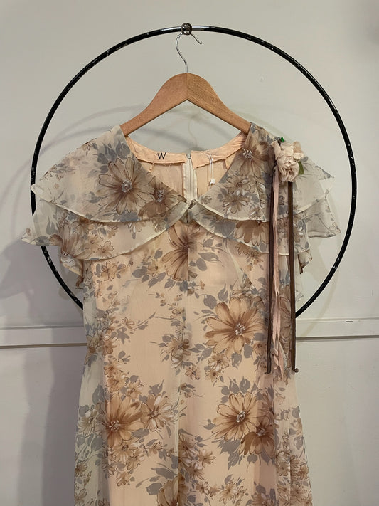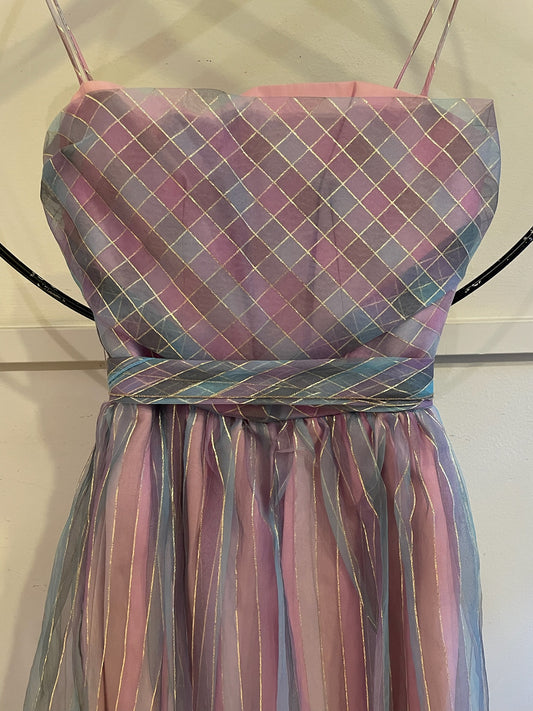 50s Handmade Cocktail Dress W/Beaded Waist Sash And Train