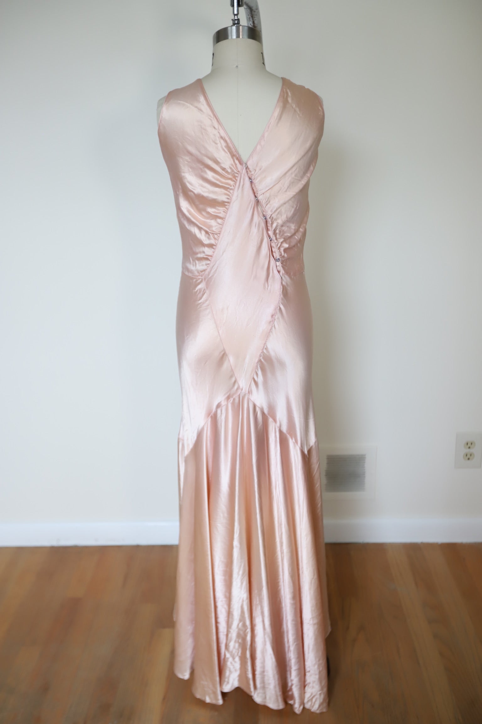 1920s Liquid Satin Snap Bias Cut Dress