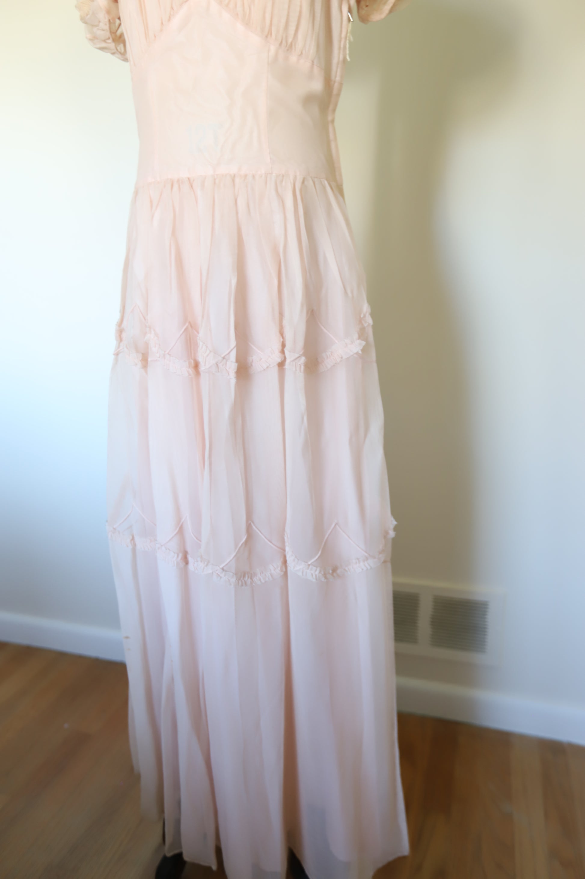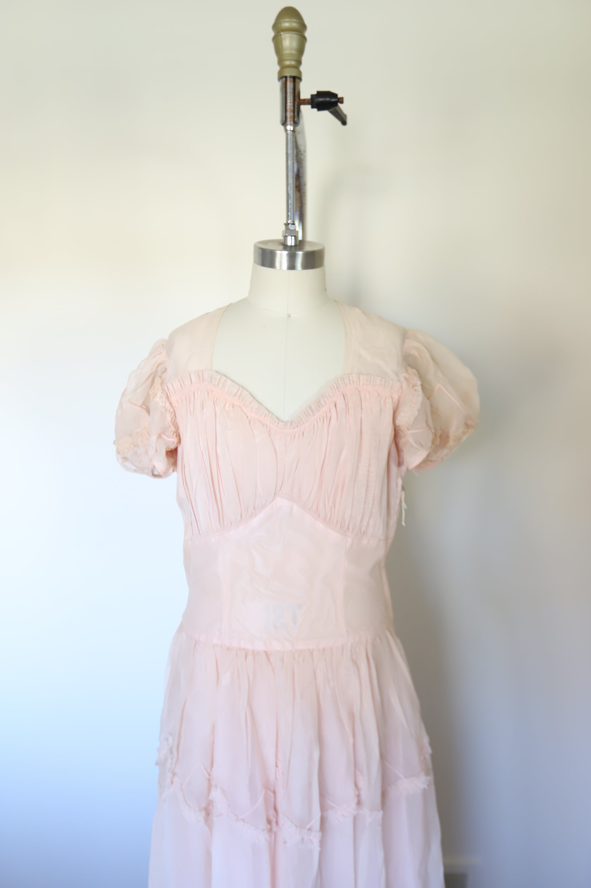 1950s Vintage Short Sleeve Pleated Sweetheart Tiered Layered Gown