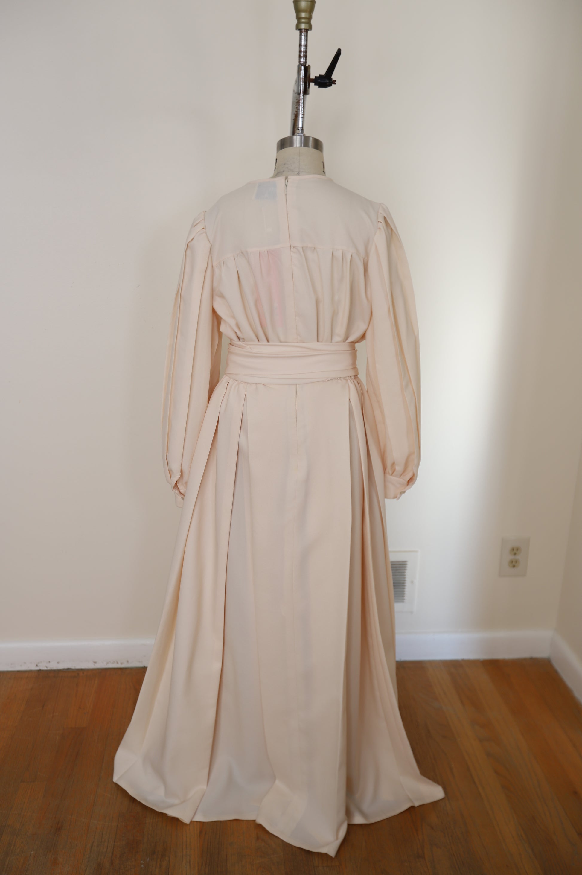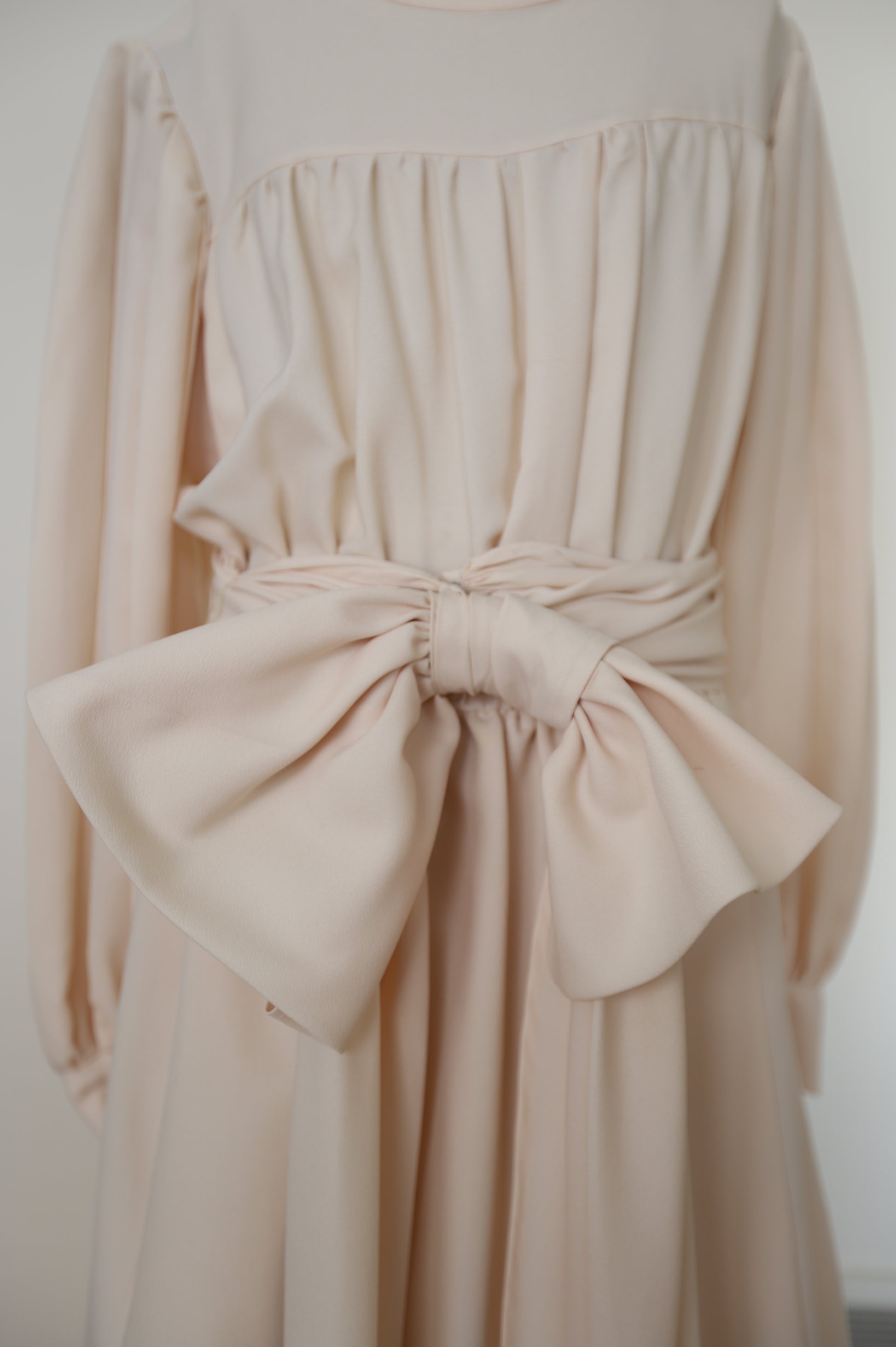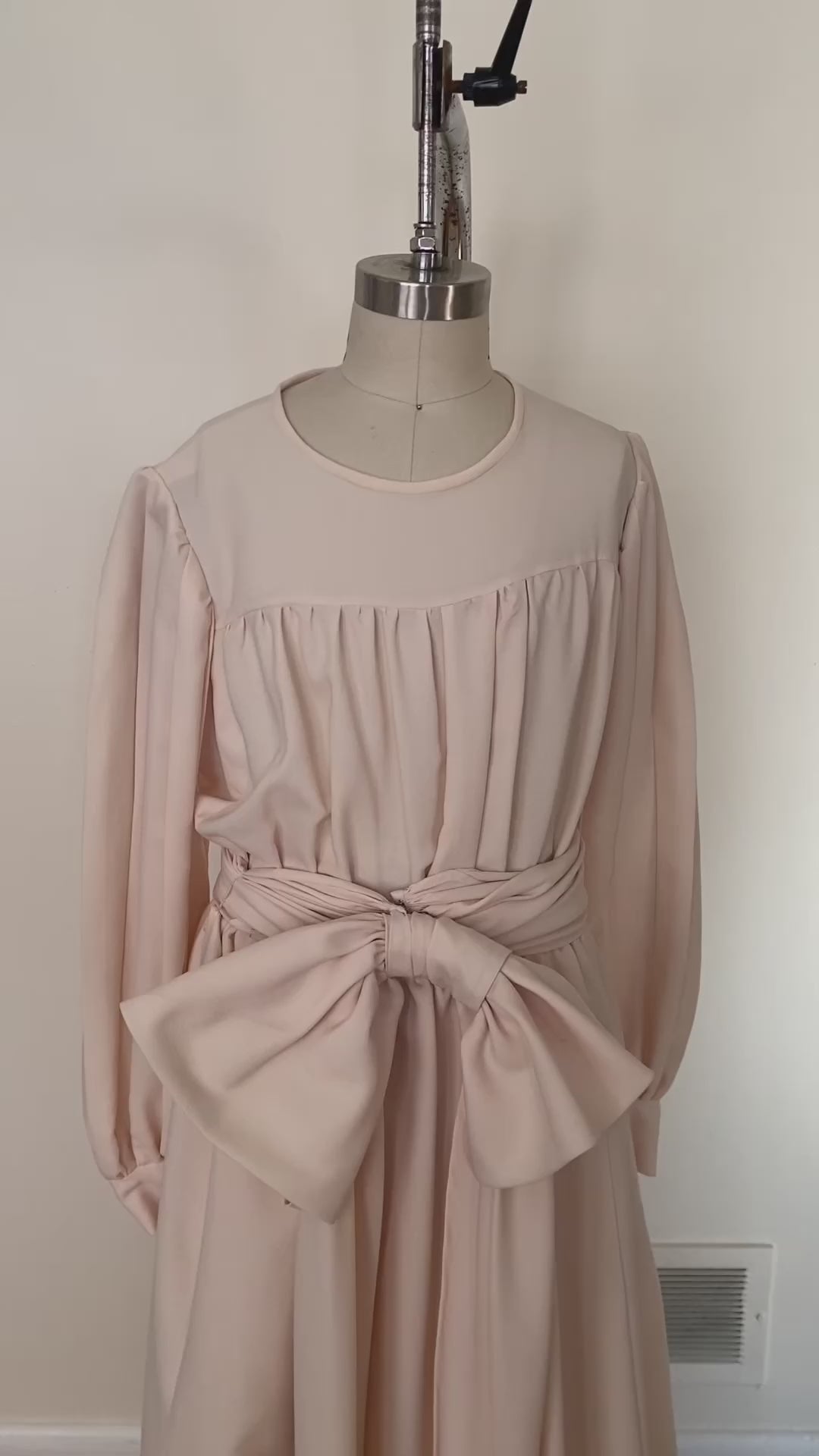 1960's Crepe Longsleeve Dress With Detachable Bow Waist