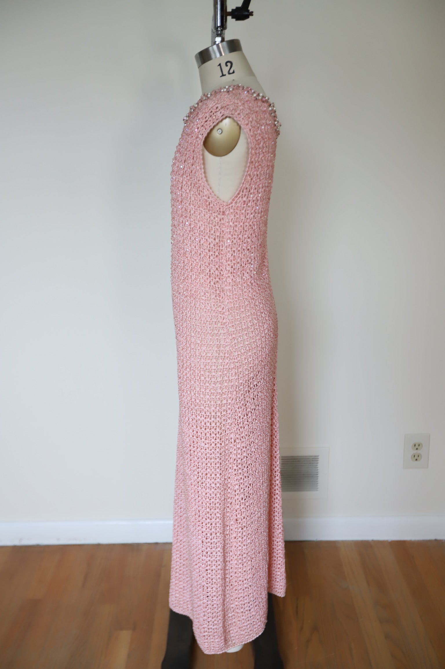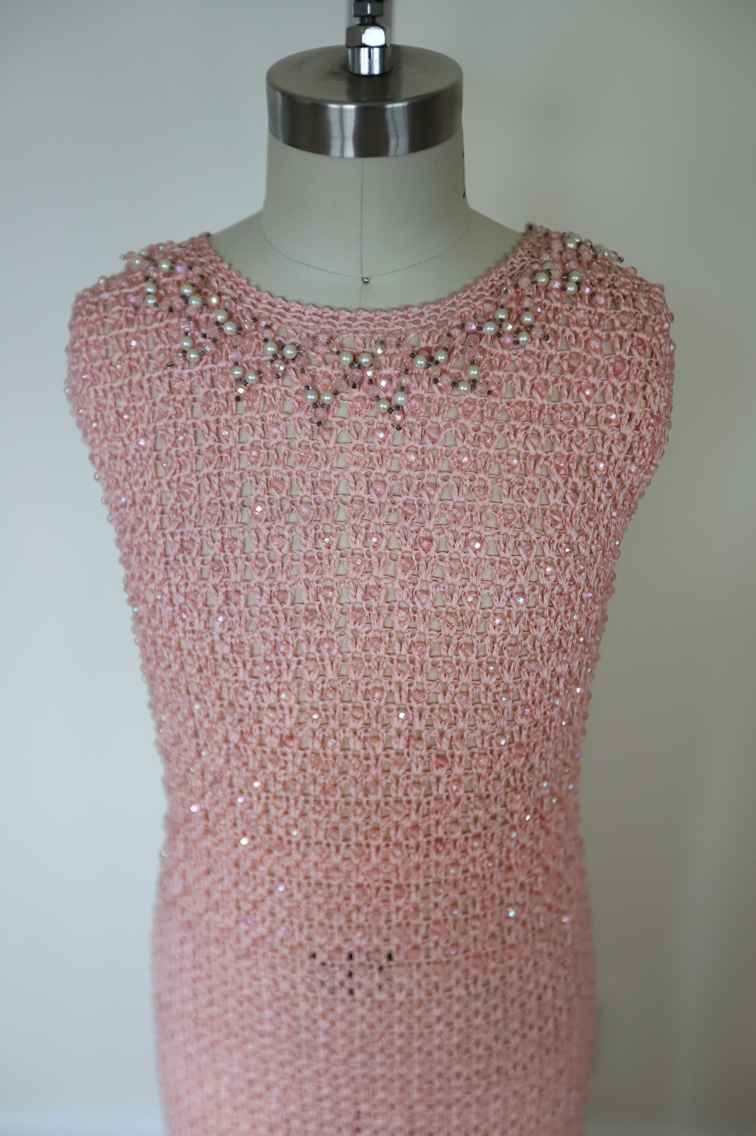 1960s Made in Italy Hand Crochet Heavy Weight Pearl Beaded Cocktail Dress