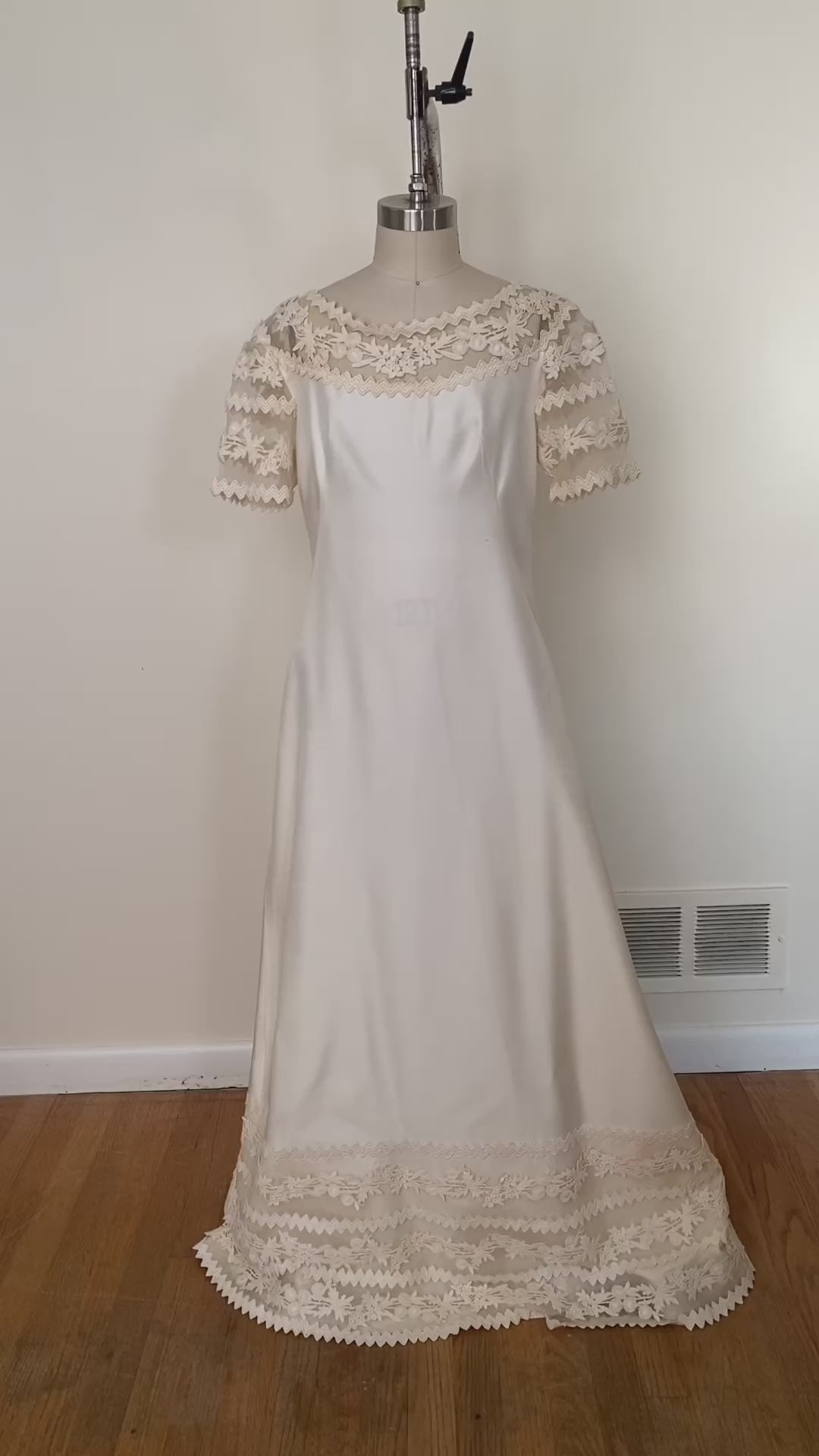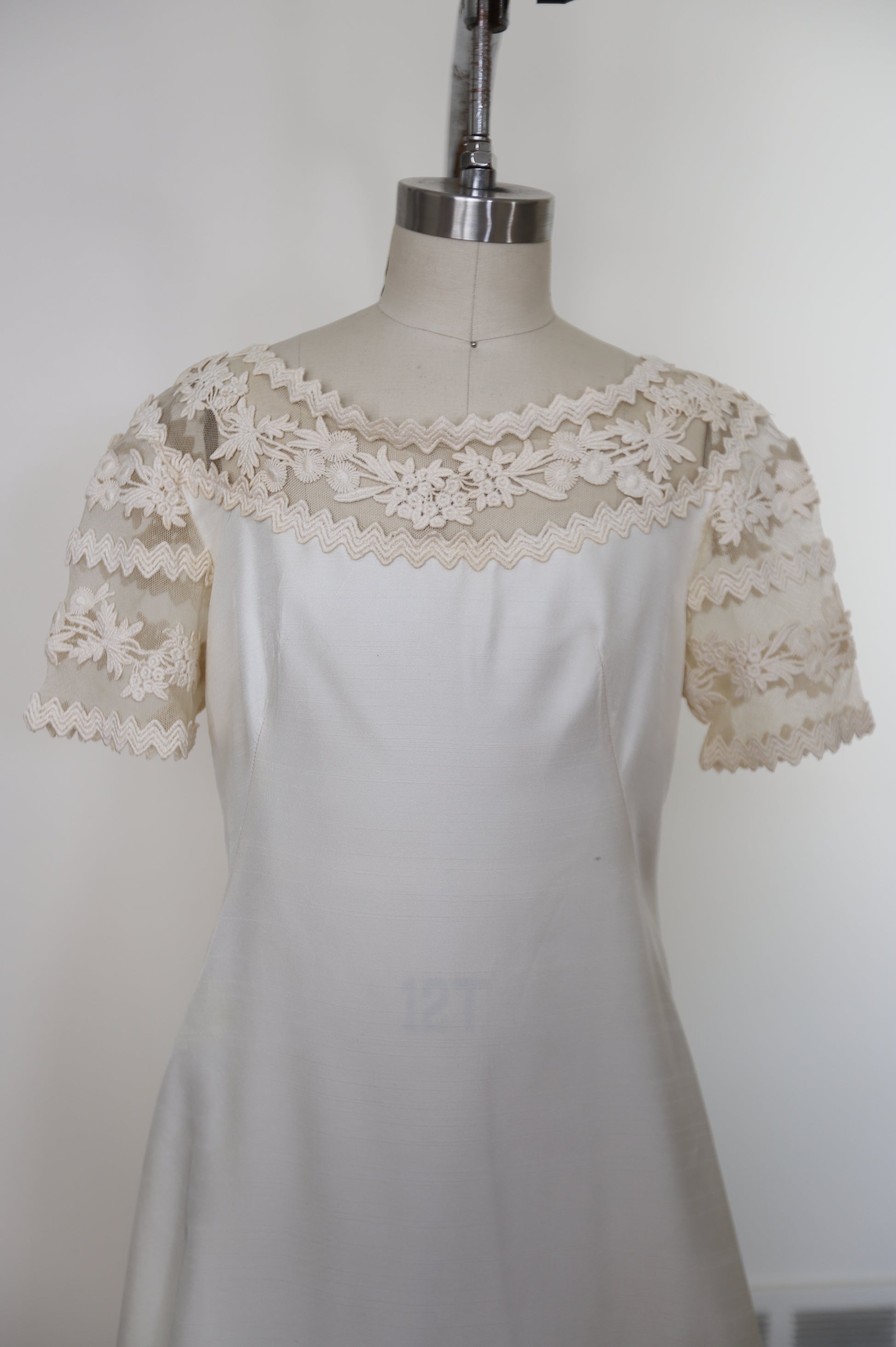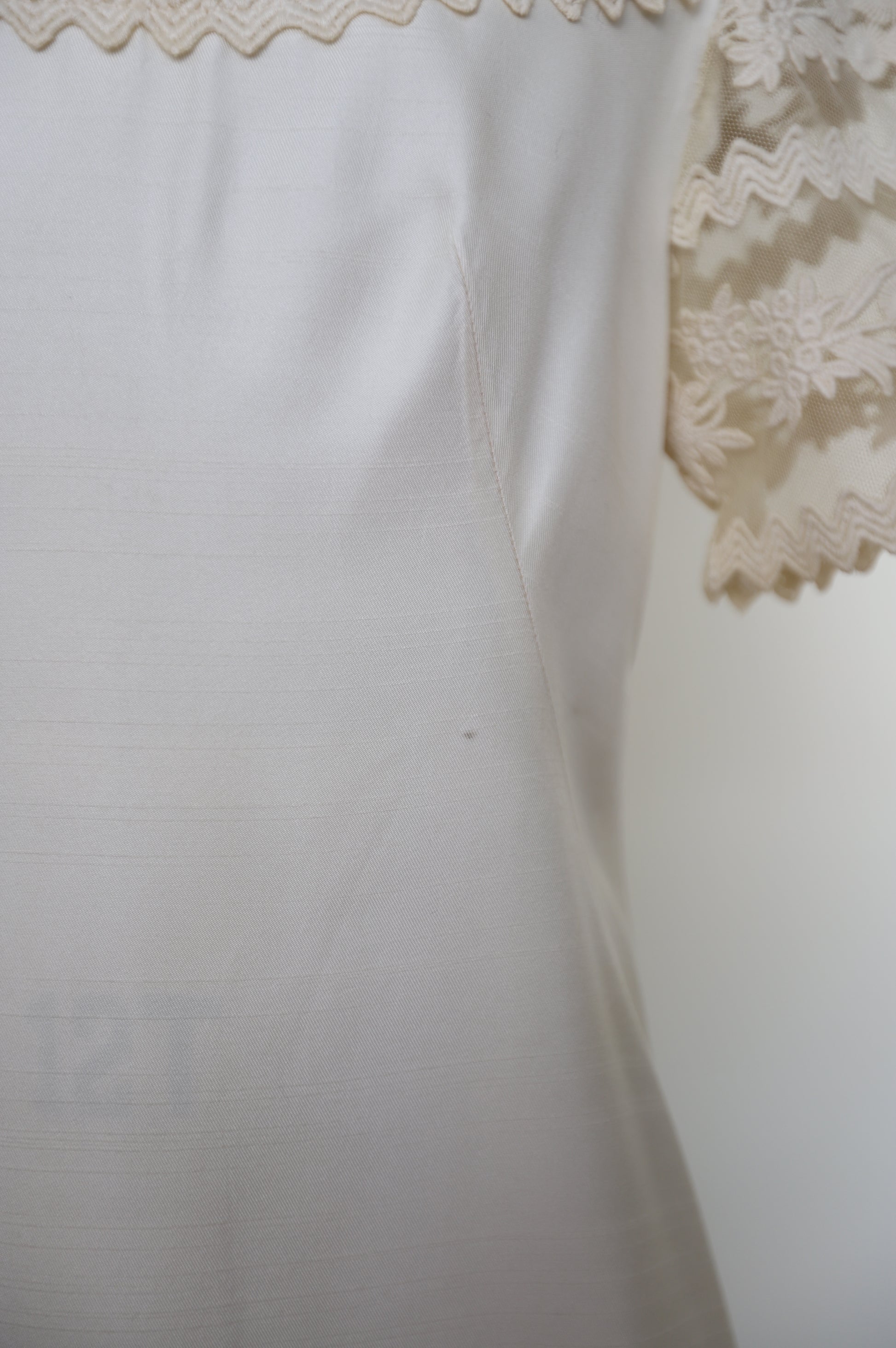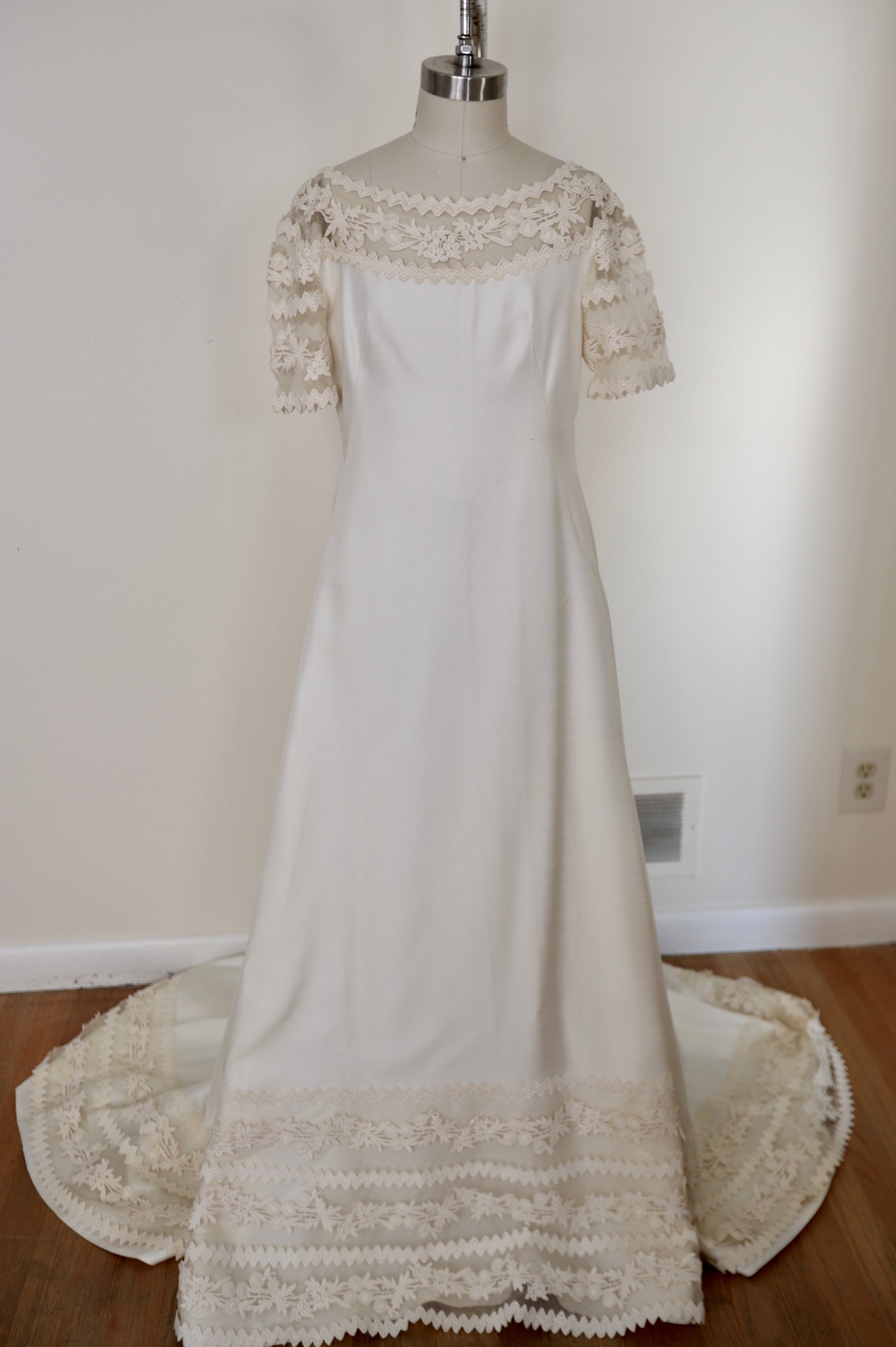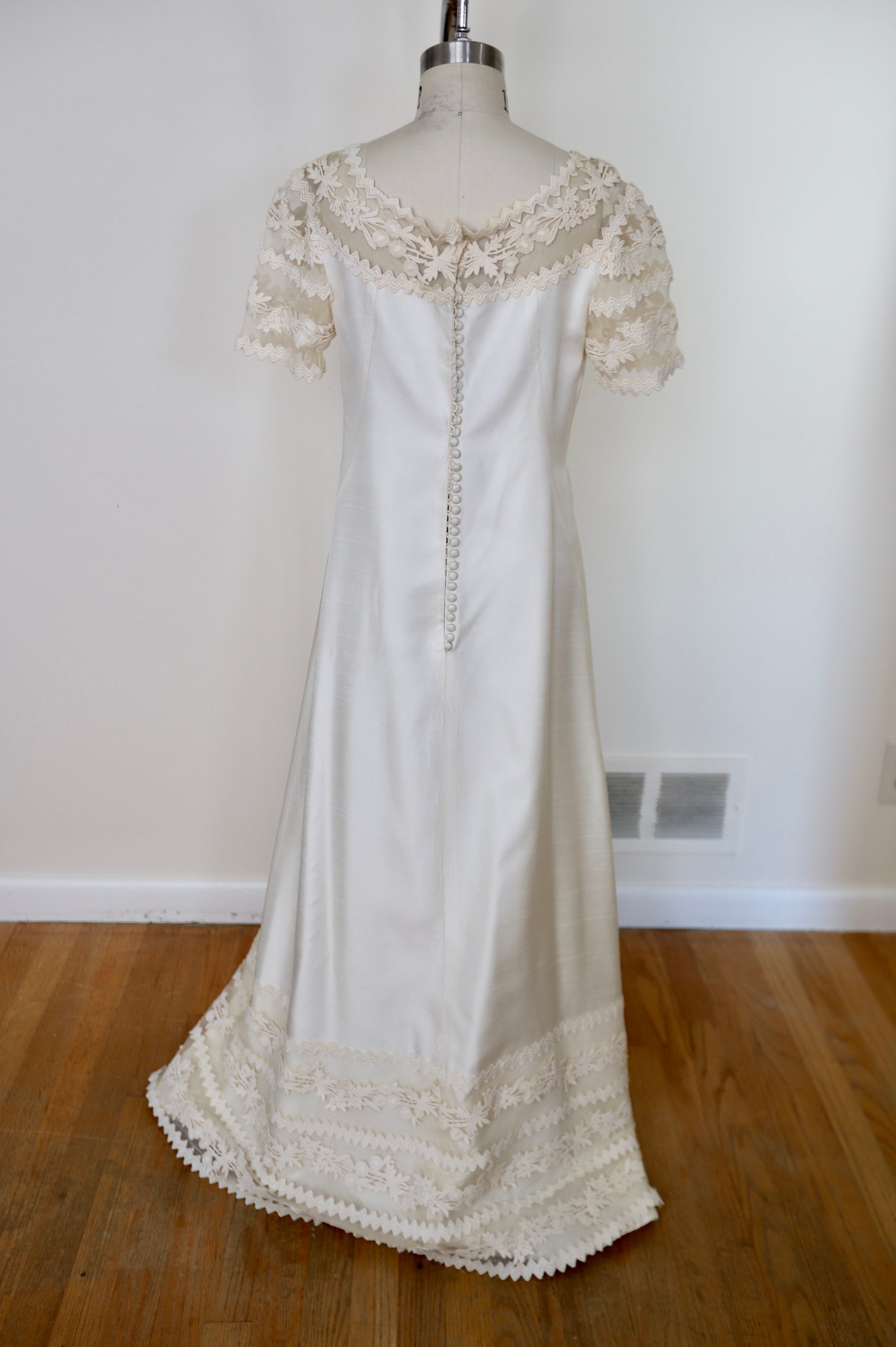 1960's Silk Lace Mesh Accented Gown With Removable Train & Veil