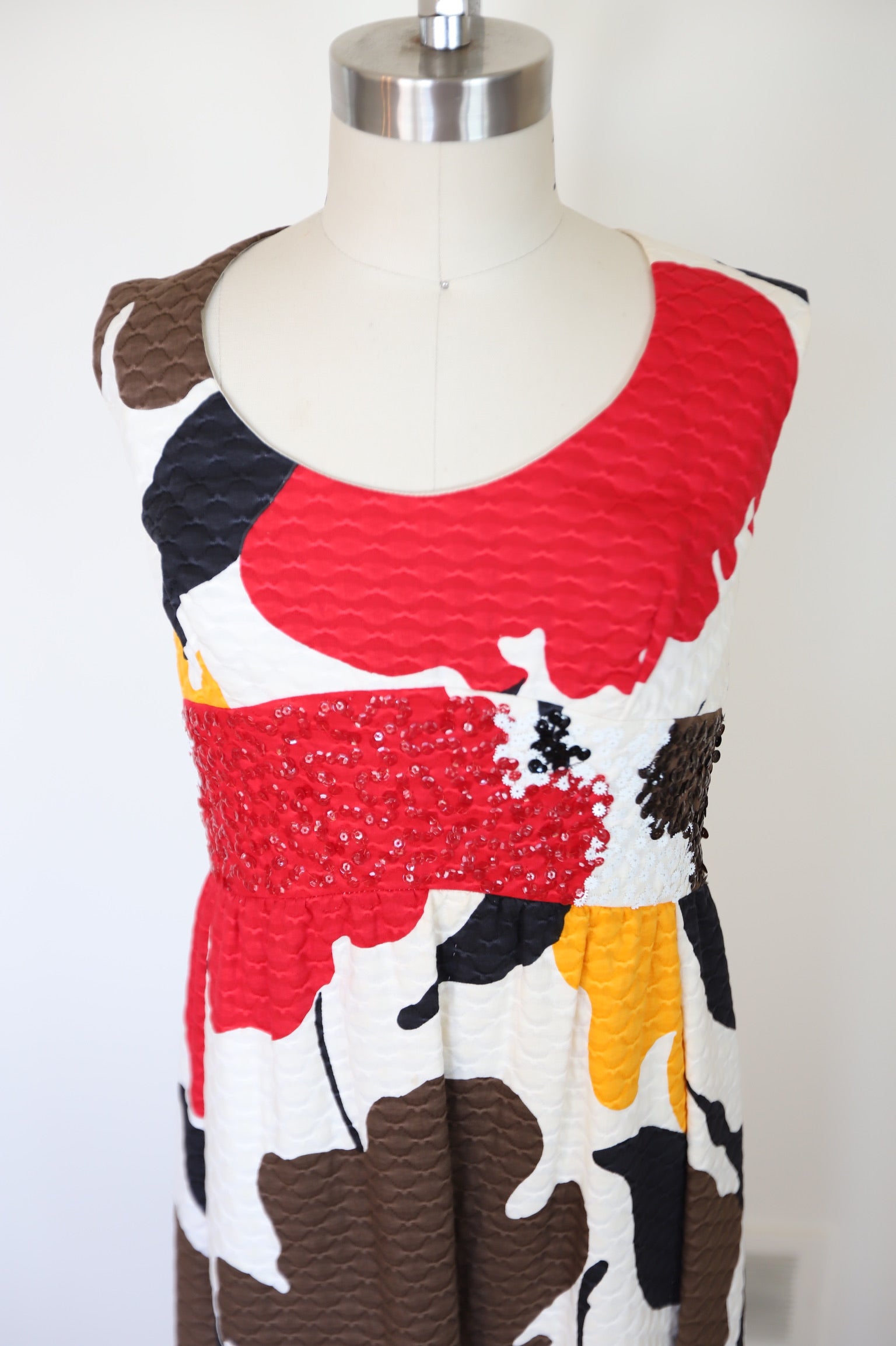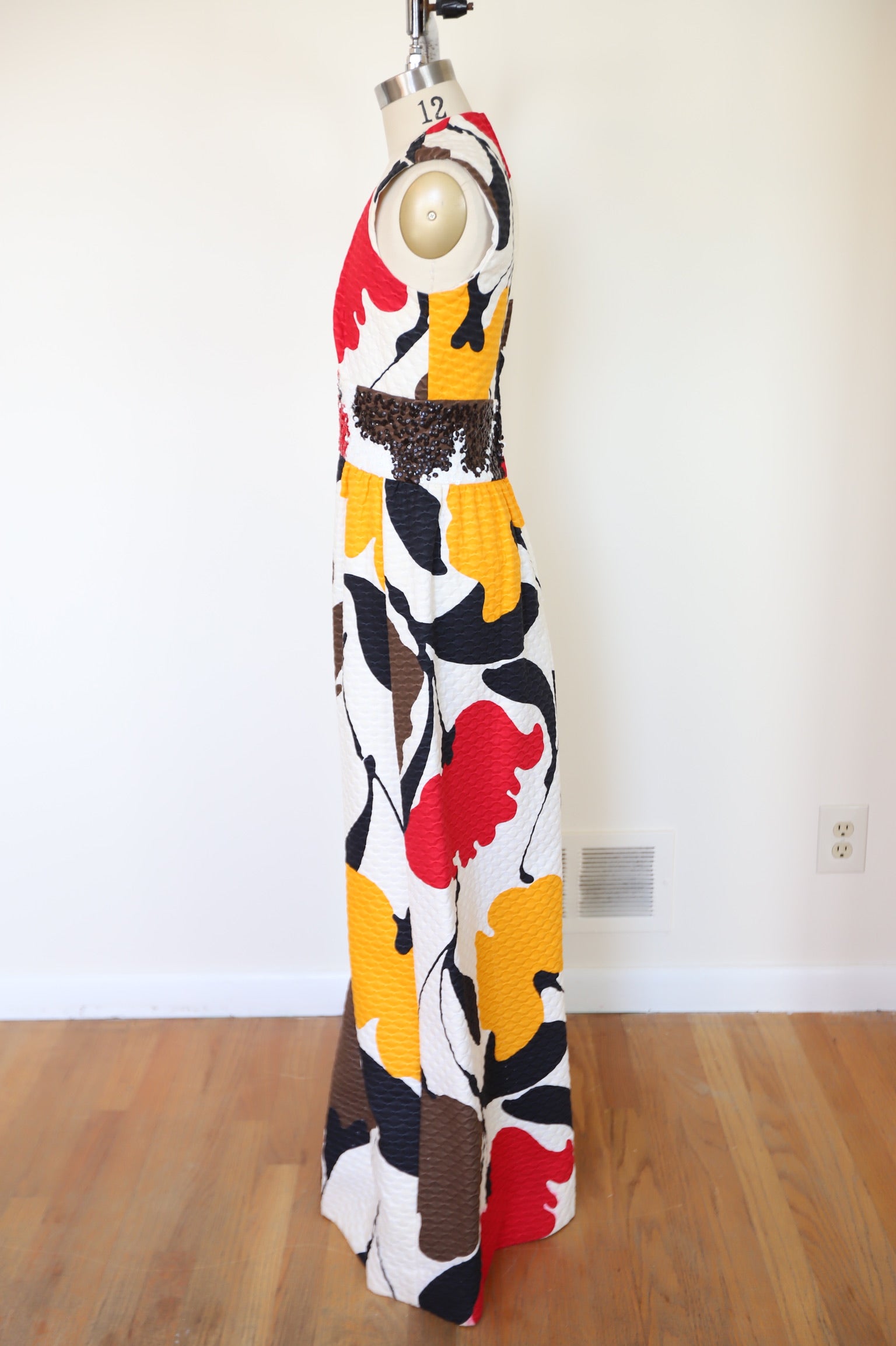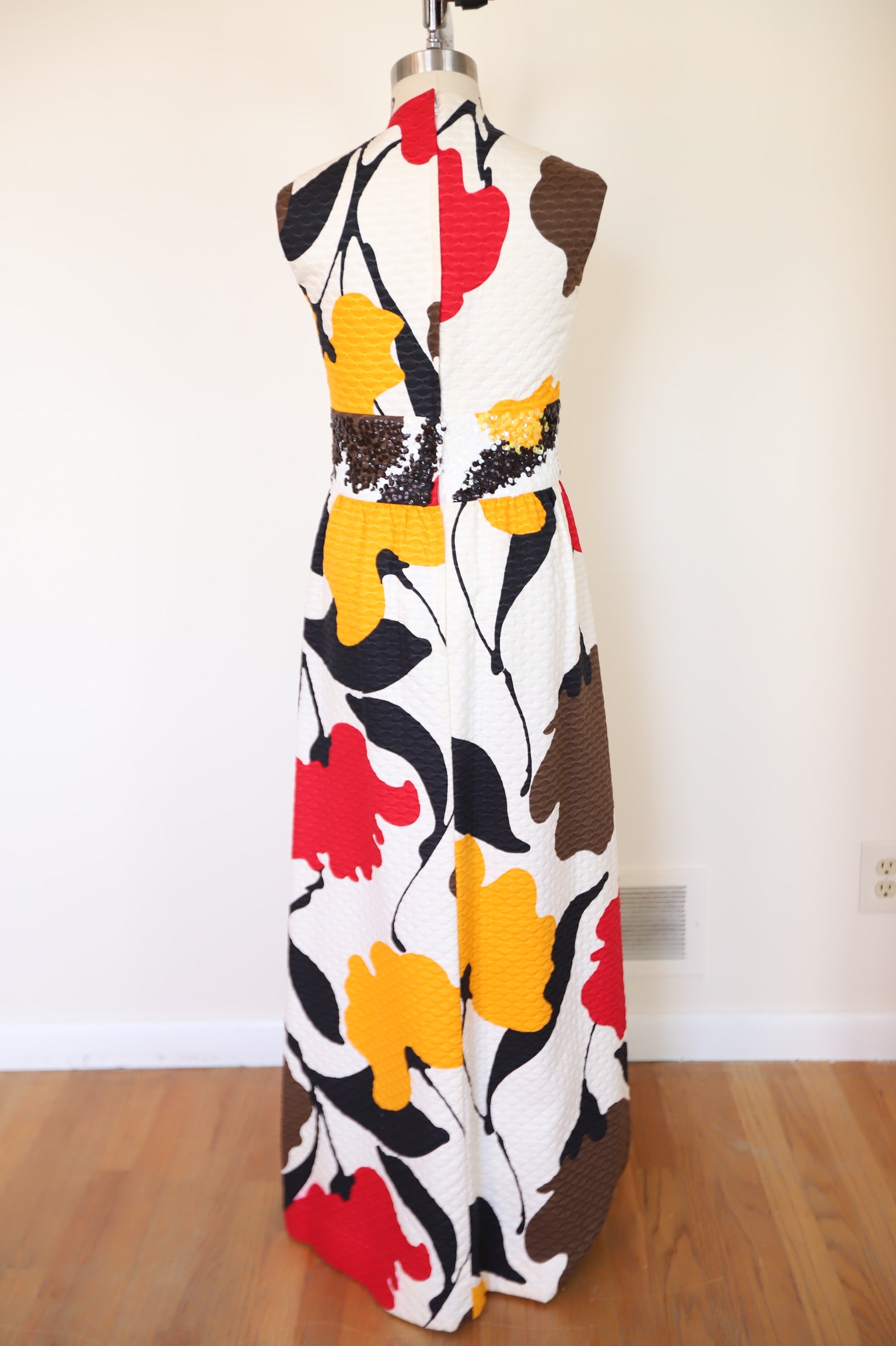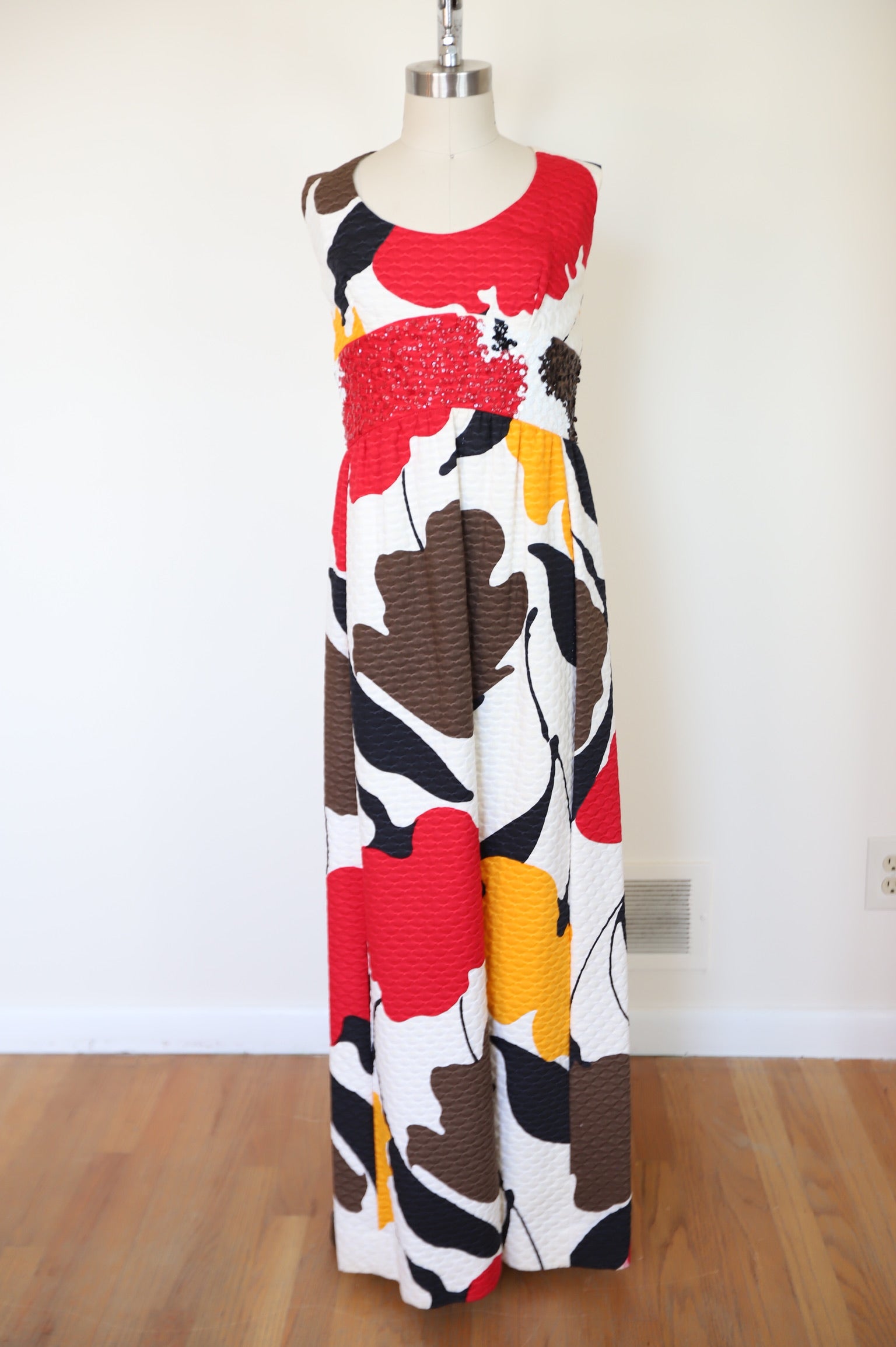 1960s Tori Ridaard Honolulu Floral Mosaic Waffle Dress