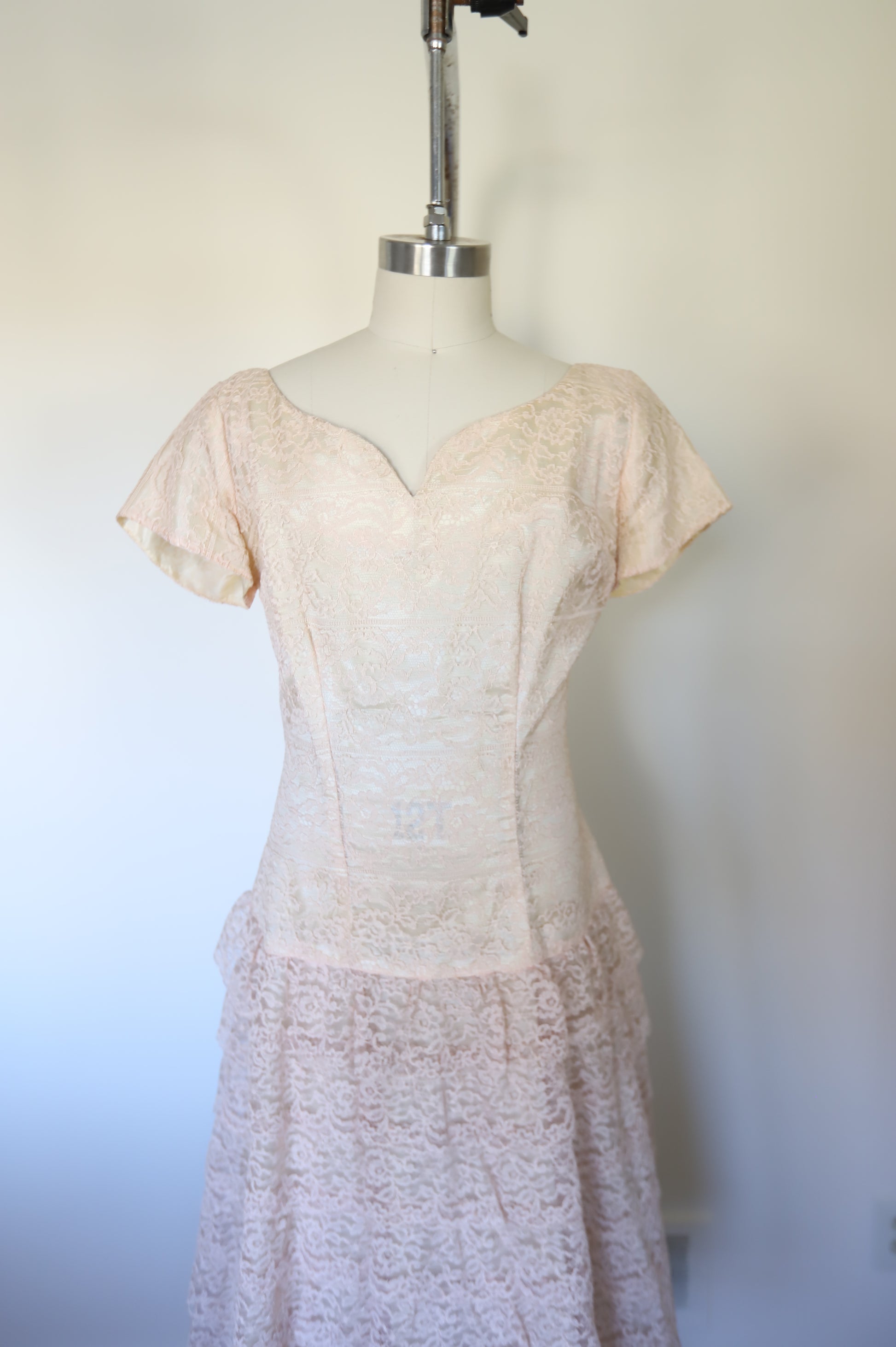 This 1960s dress has a great drop waist with a beautiful tiered lace skirt.