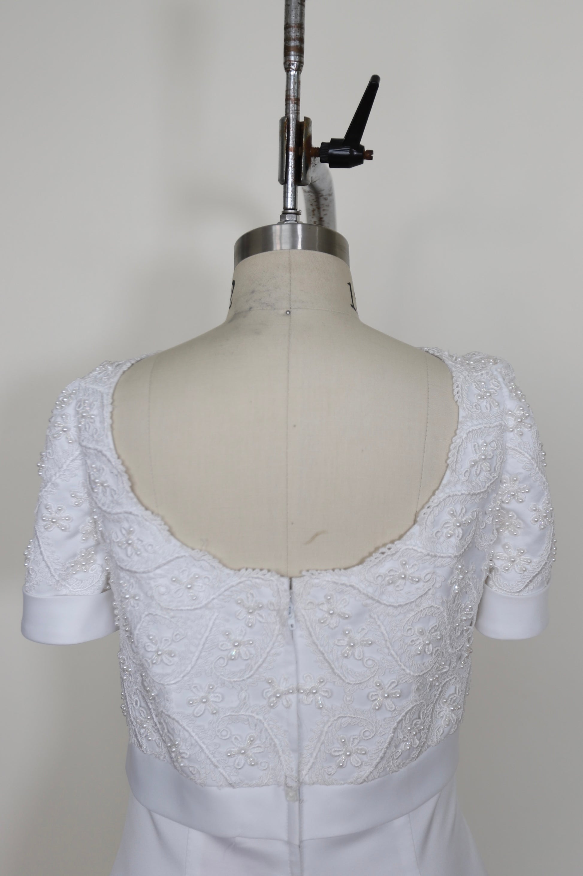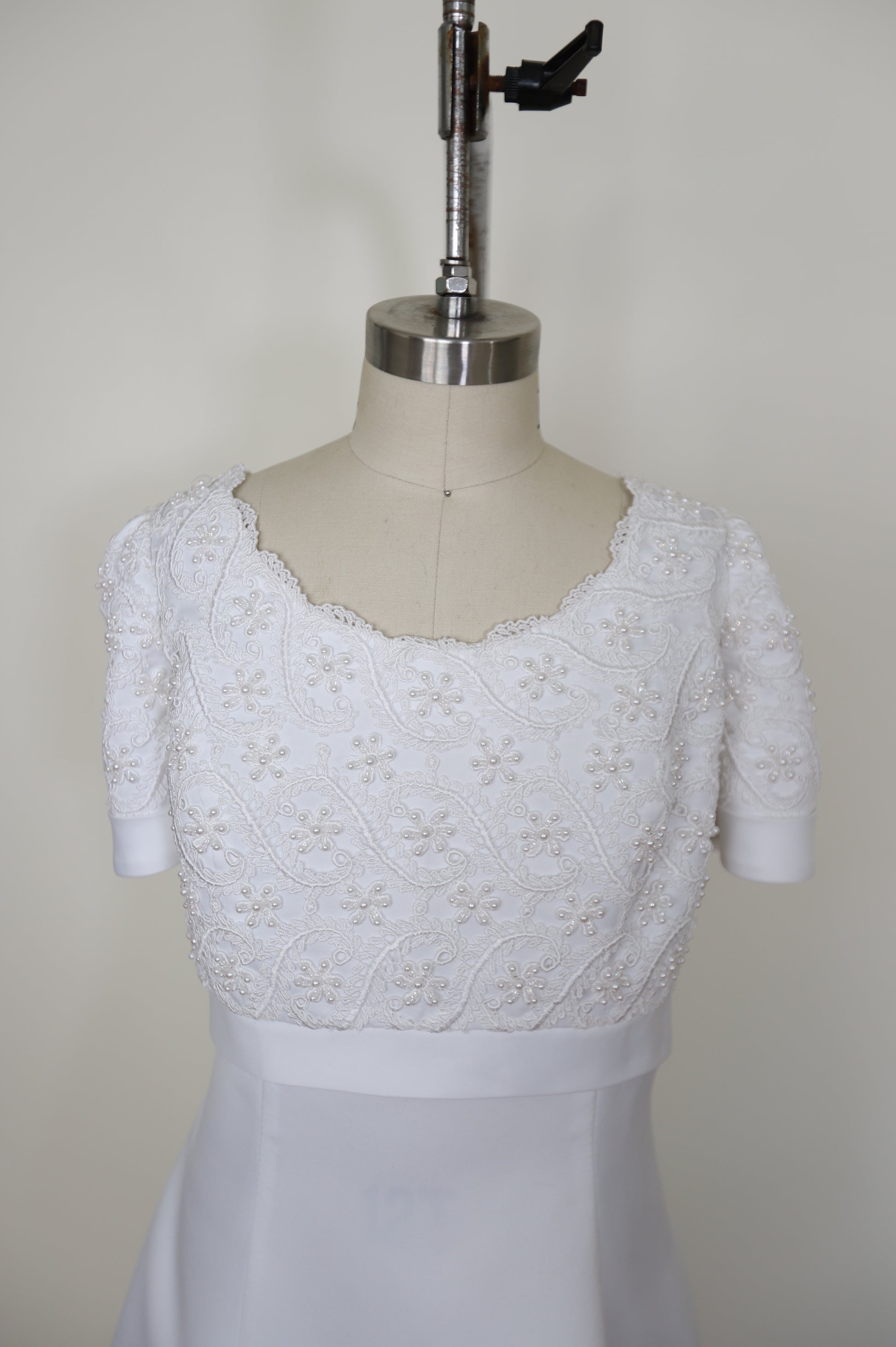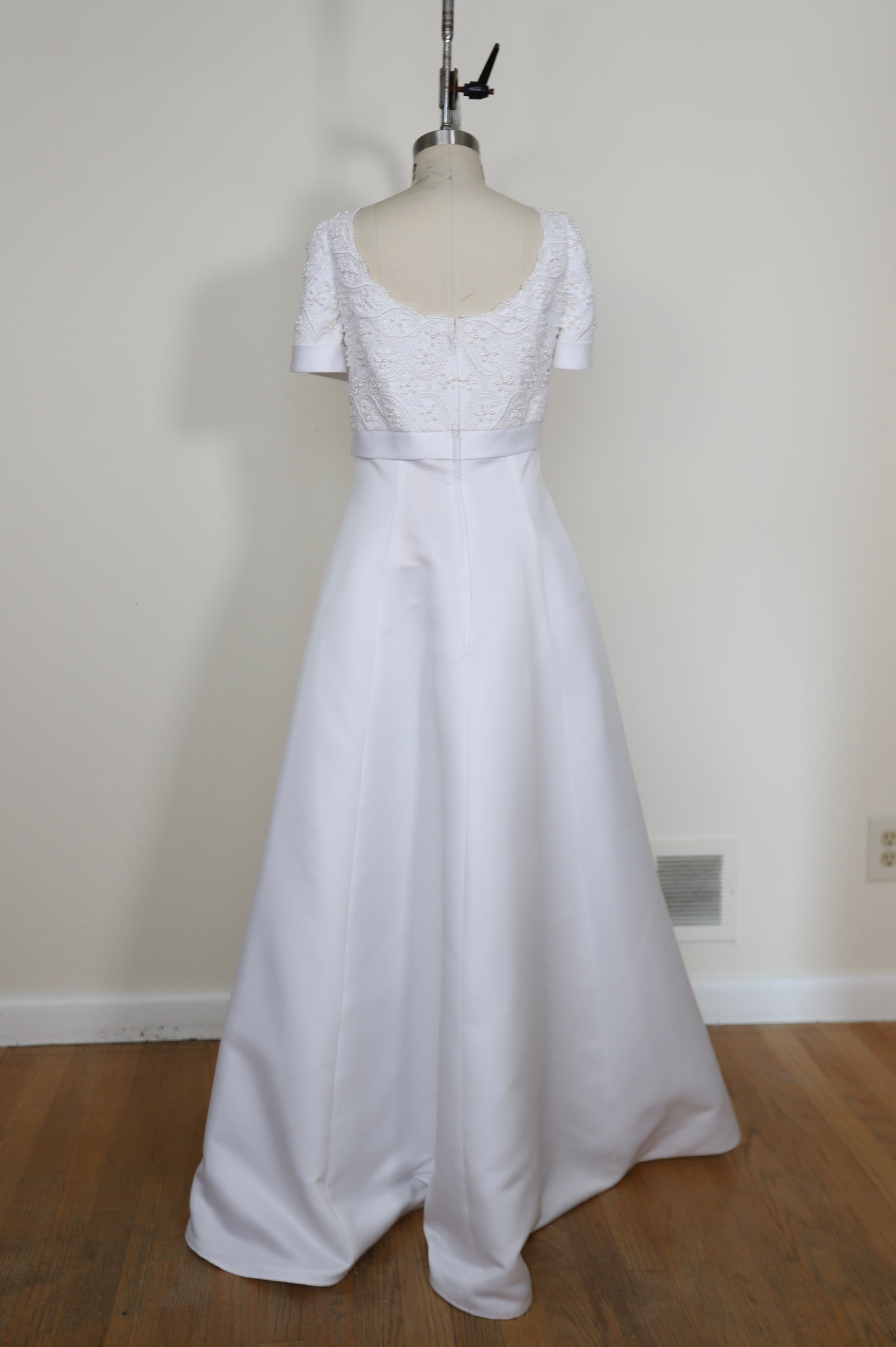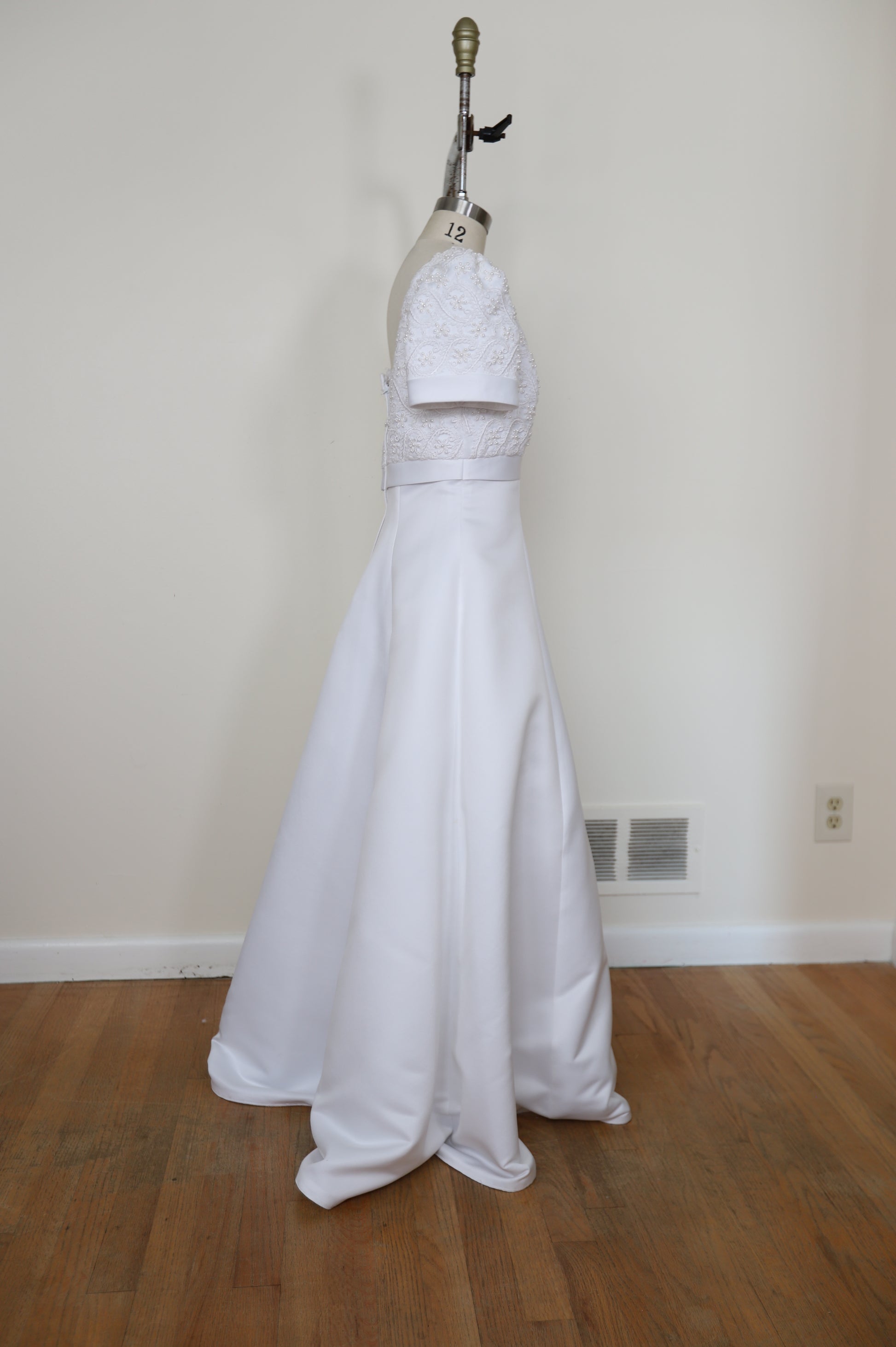 1990's Empire Waist Short Sleeve Lace A Line Gown