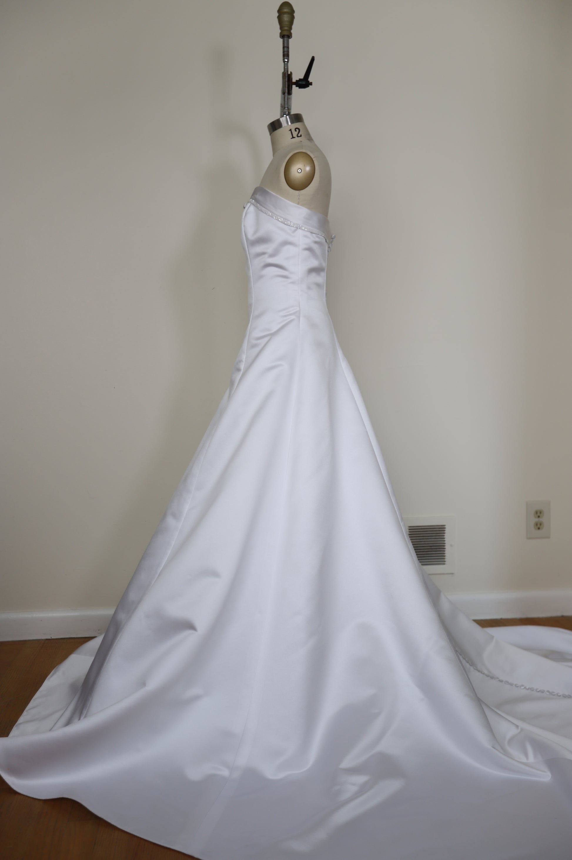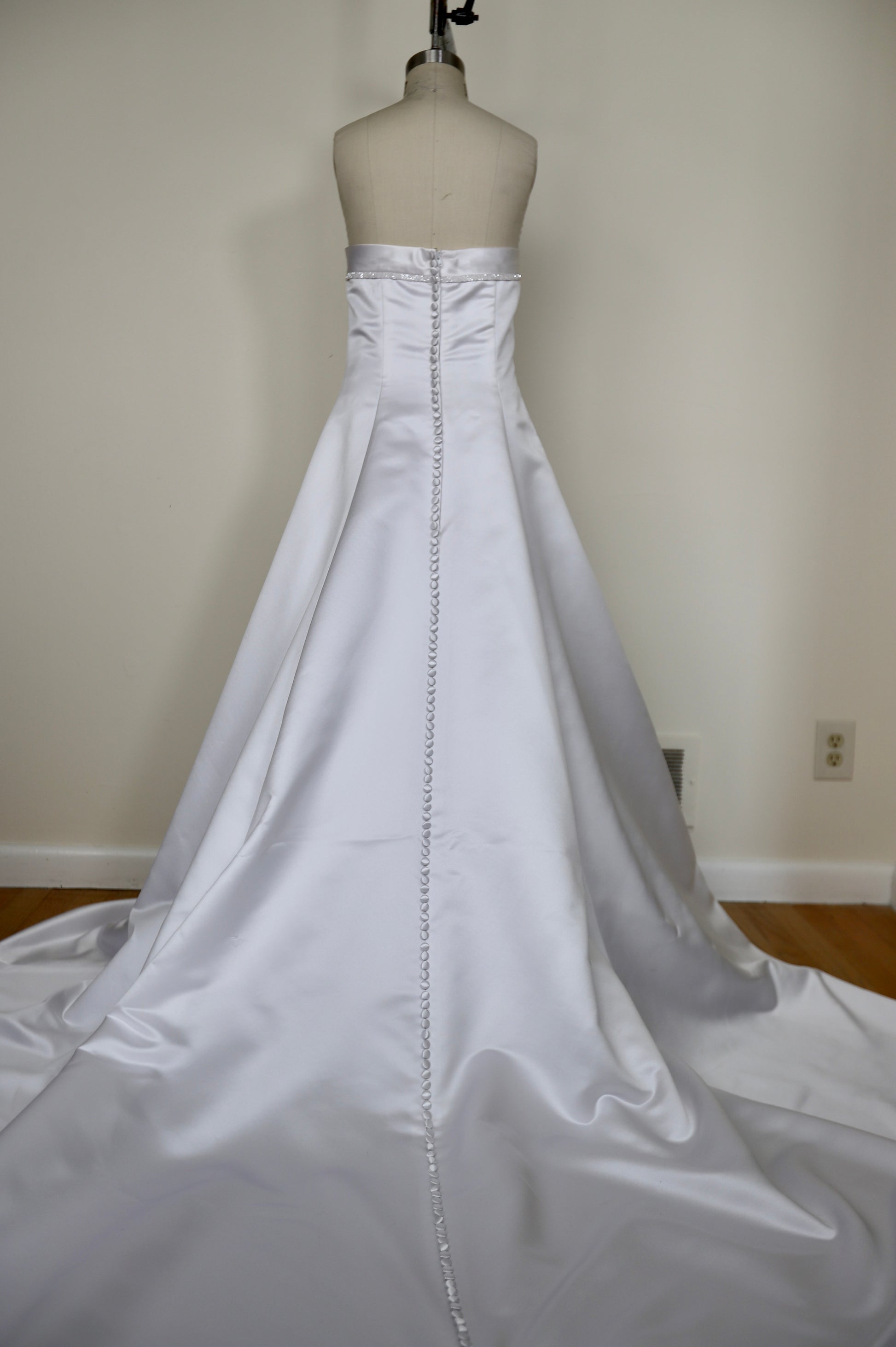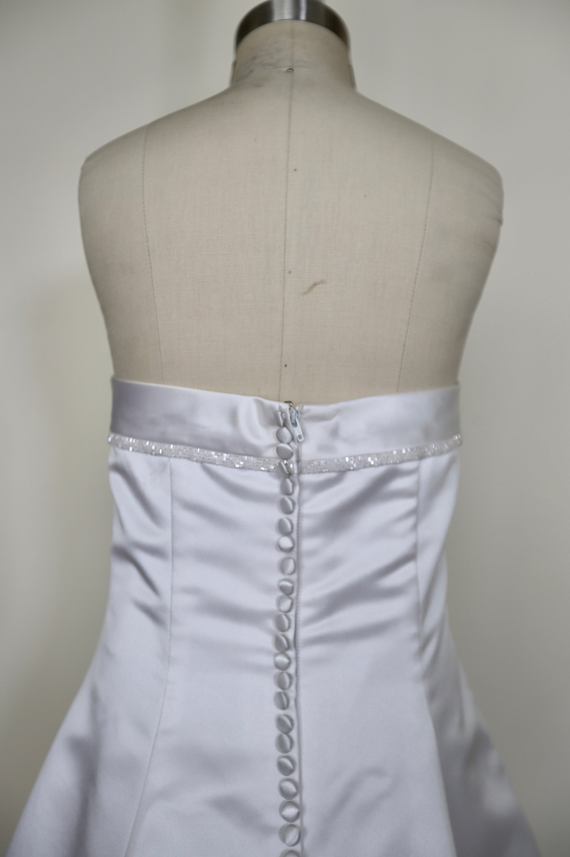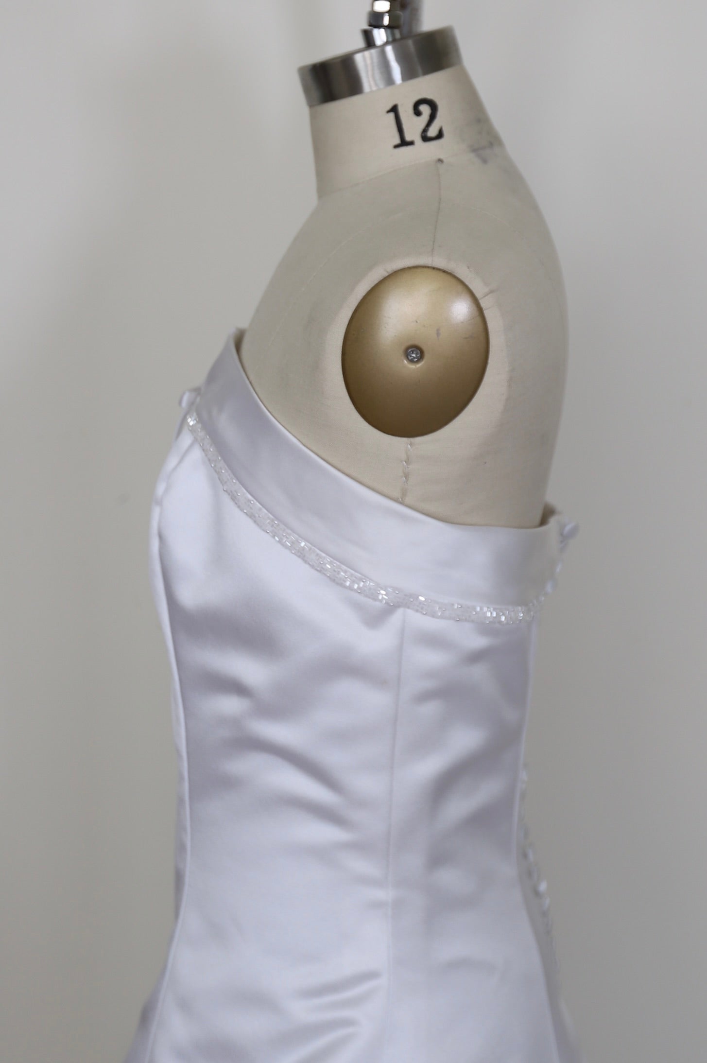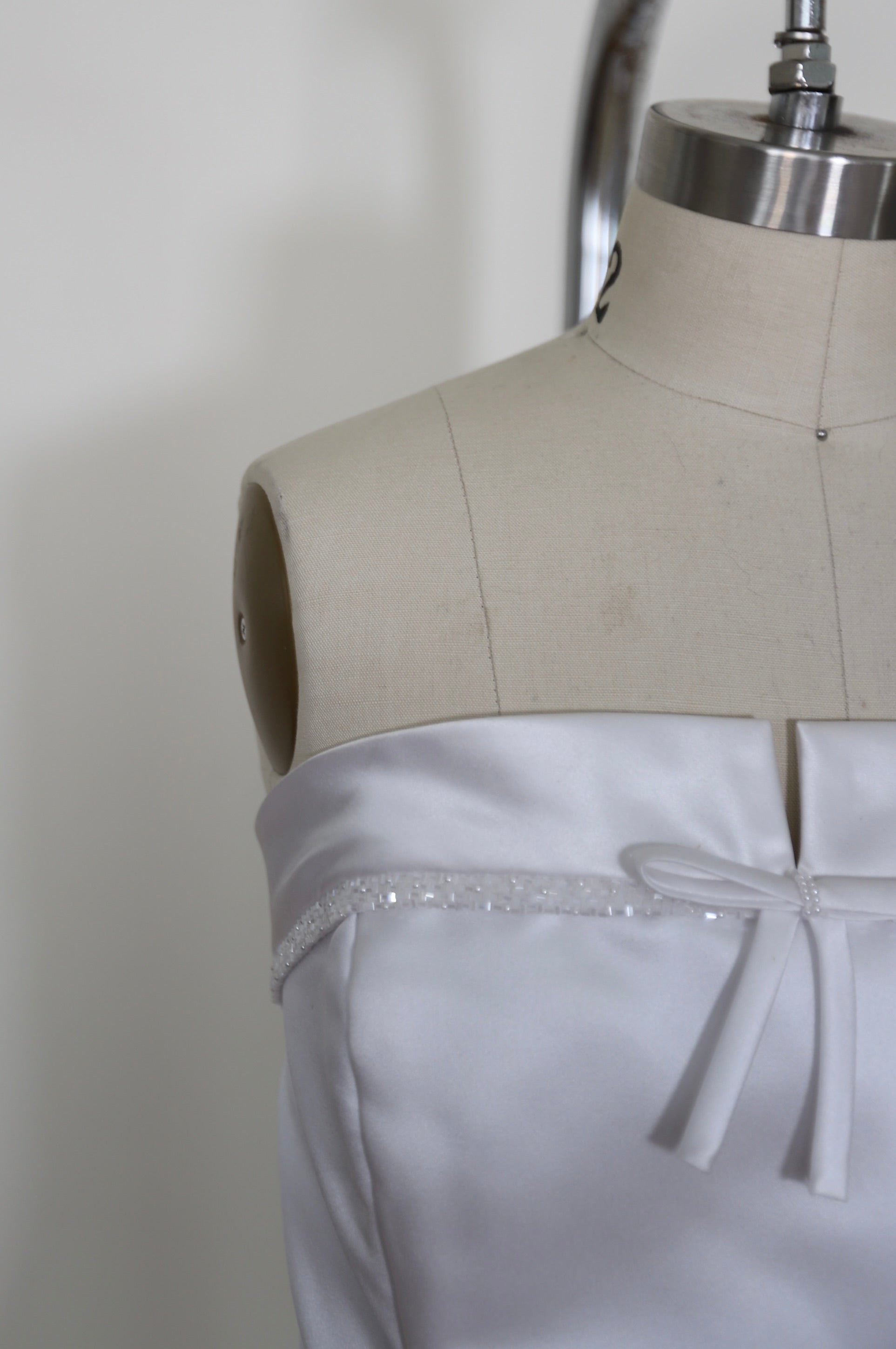 1990's Strapless Bridal Bow Gown Button Back With Train