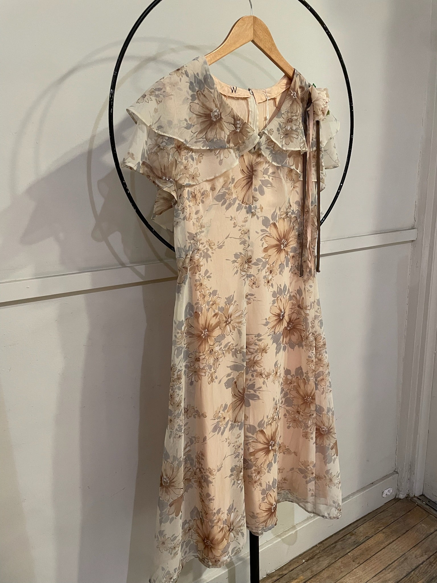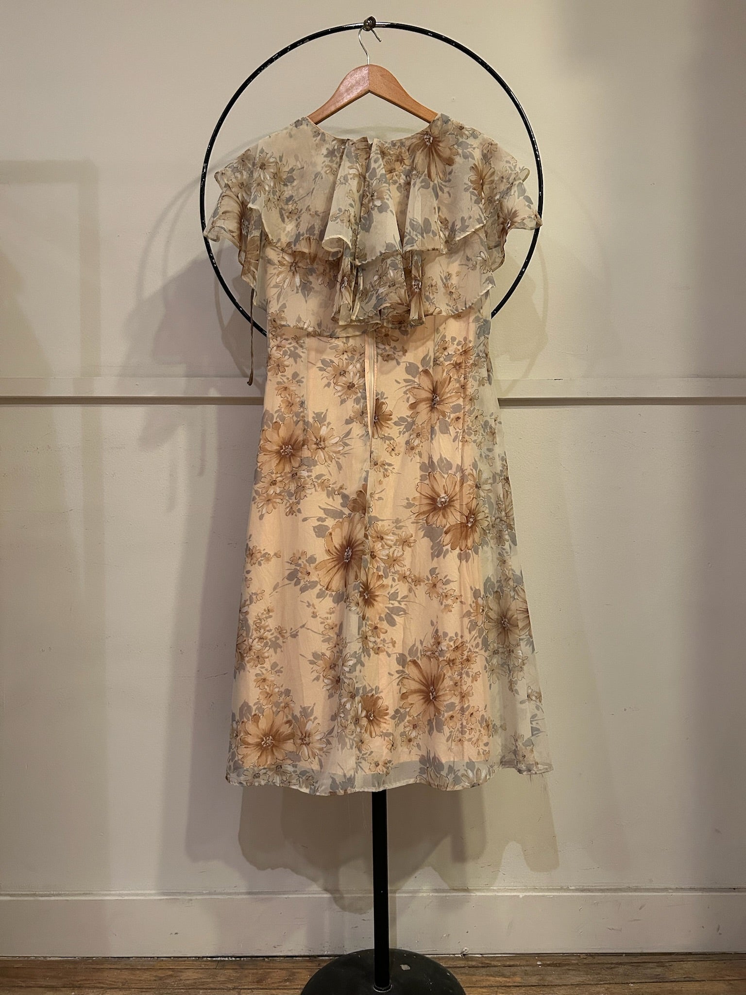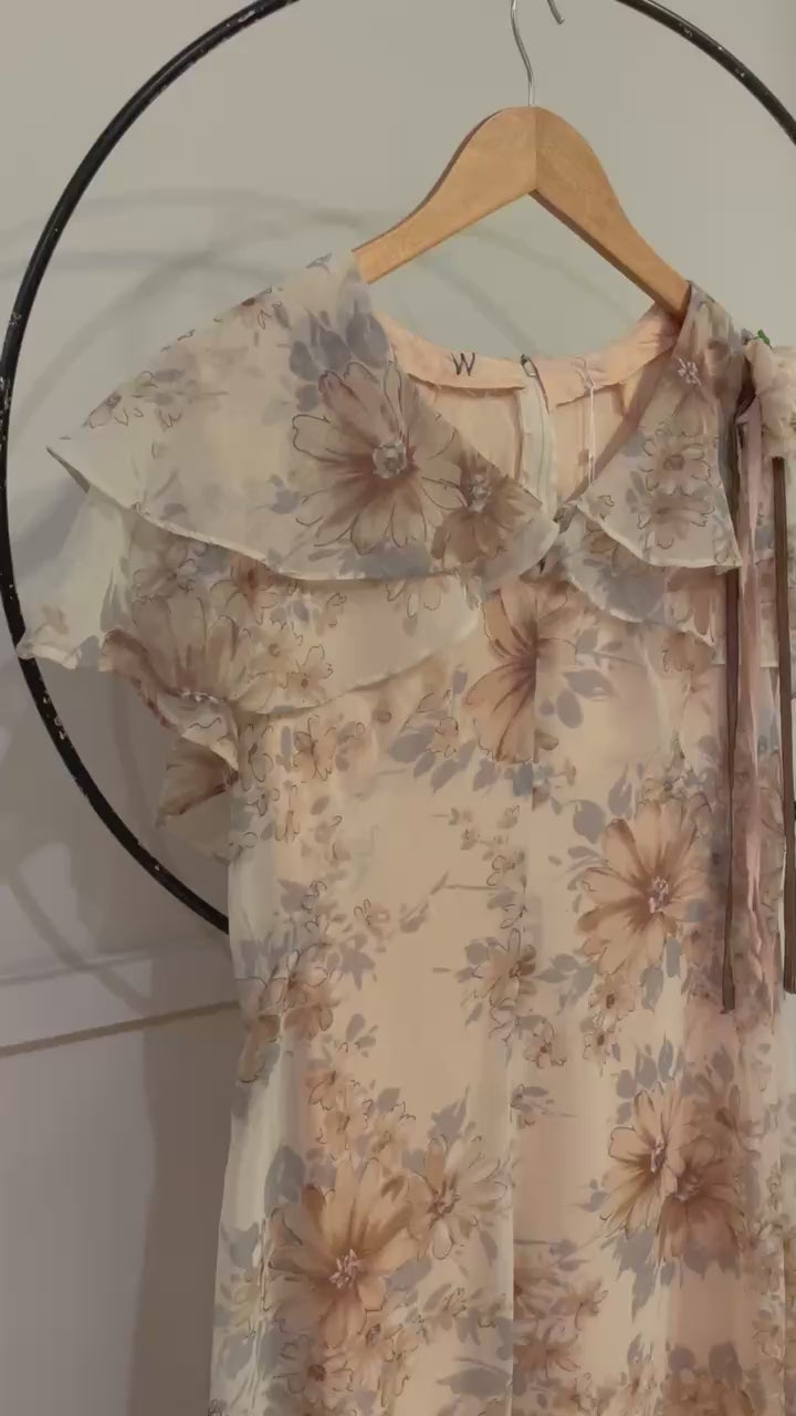 60s Floral Flutter Crepe Dress