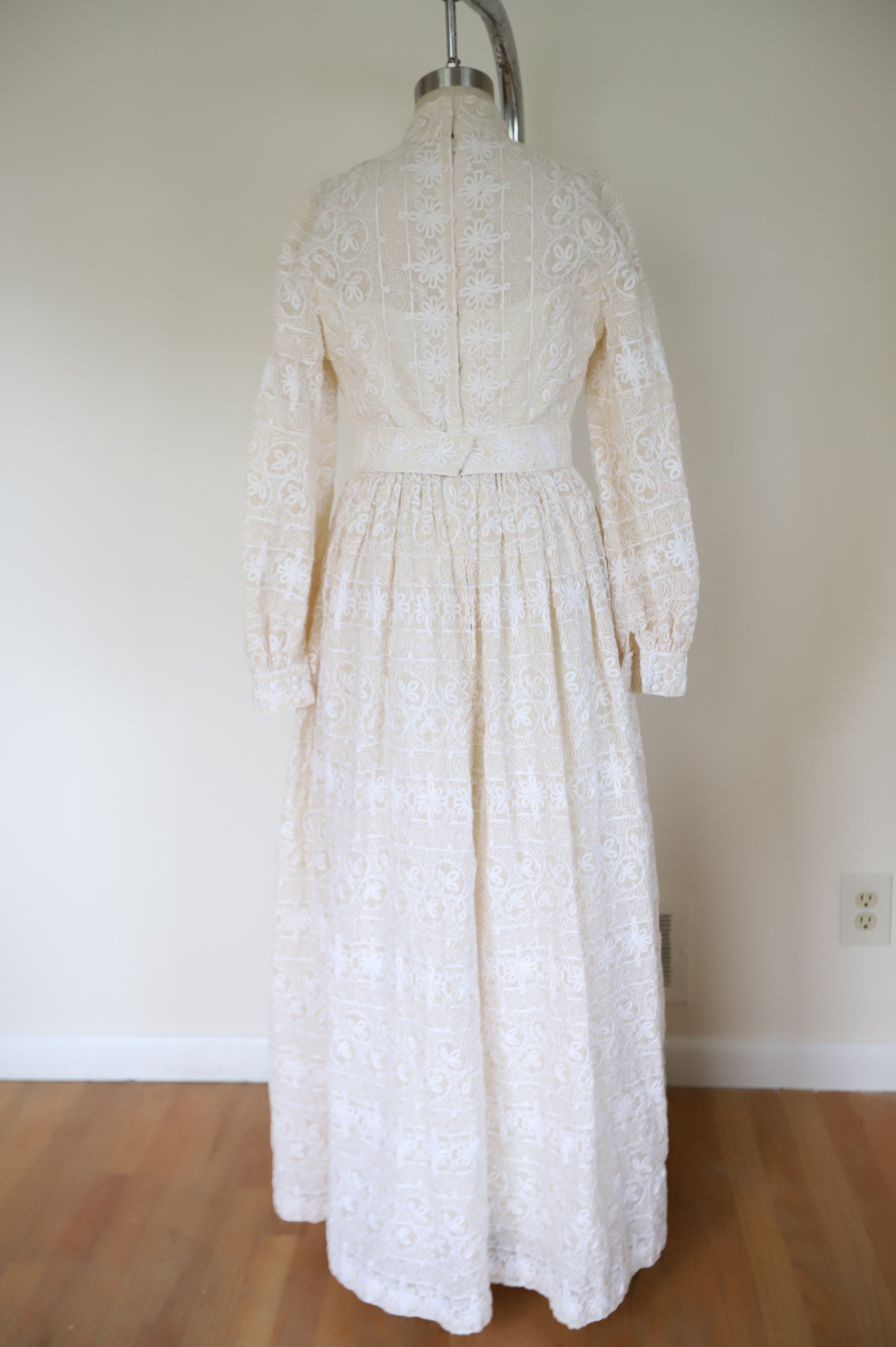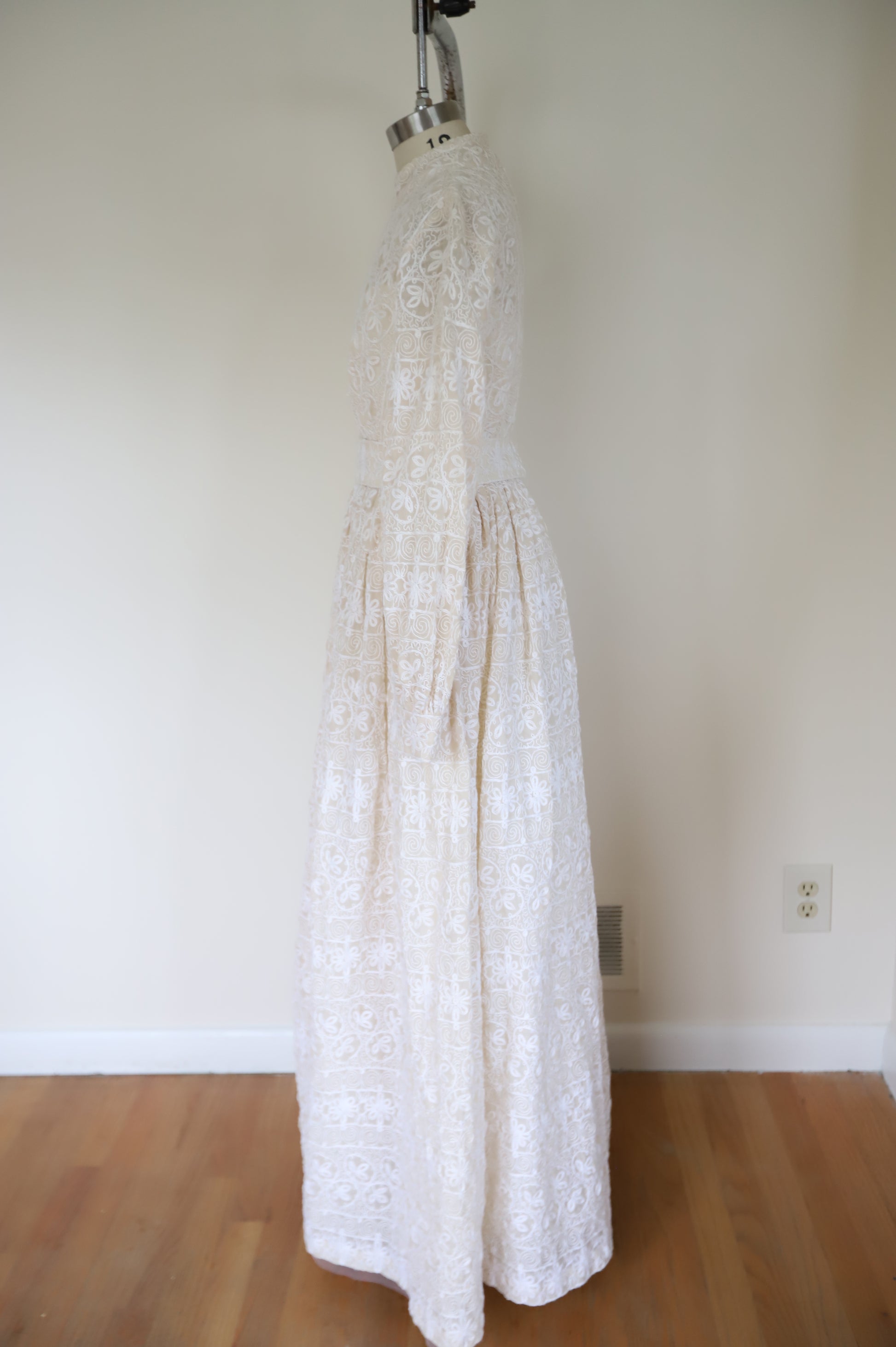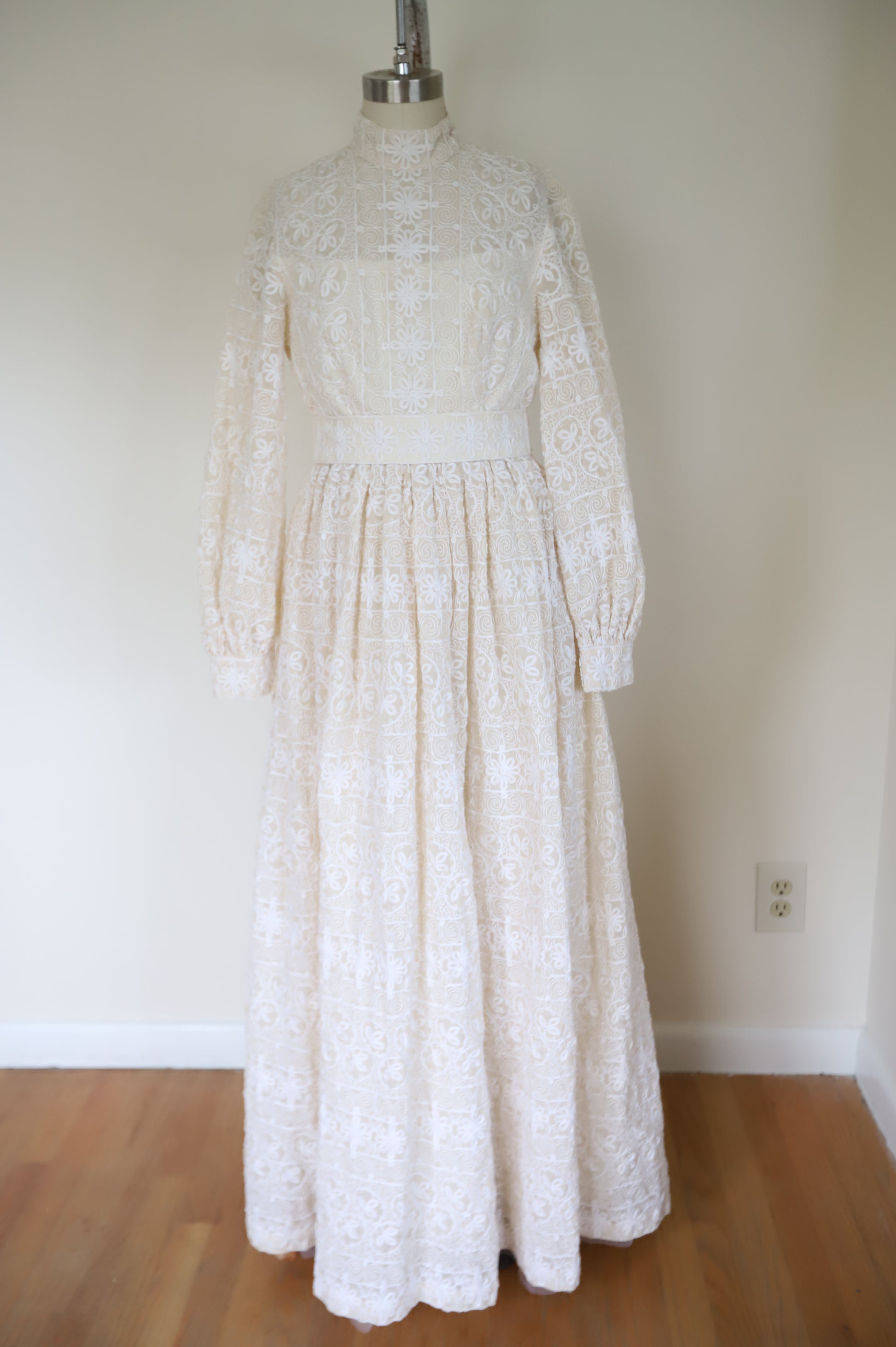 60s High Neck A-Line Long Sleeve Embroidered Bridal Gown