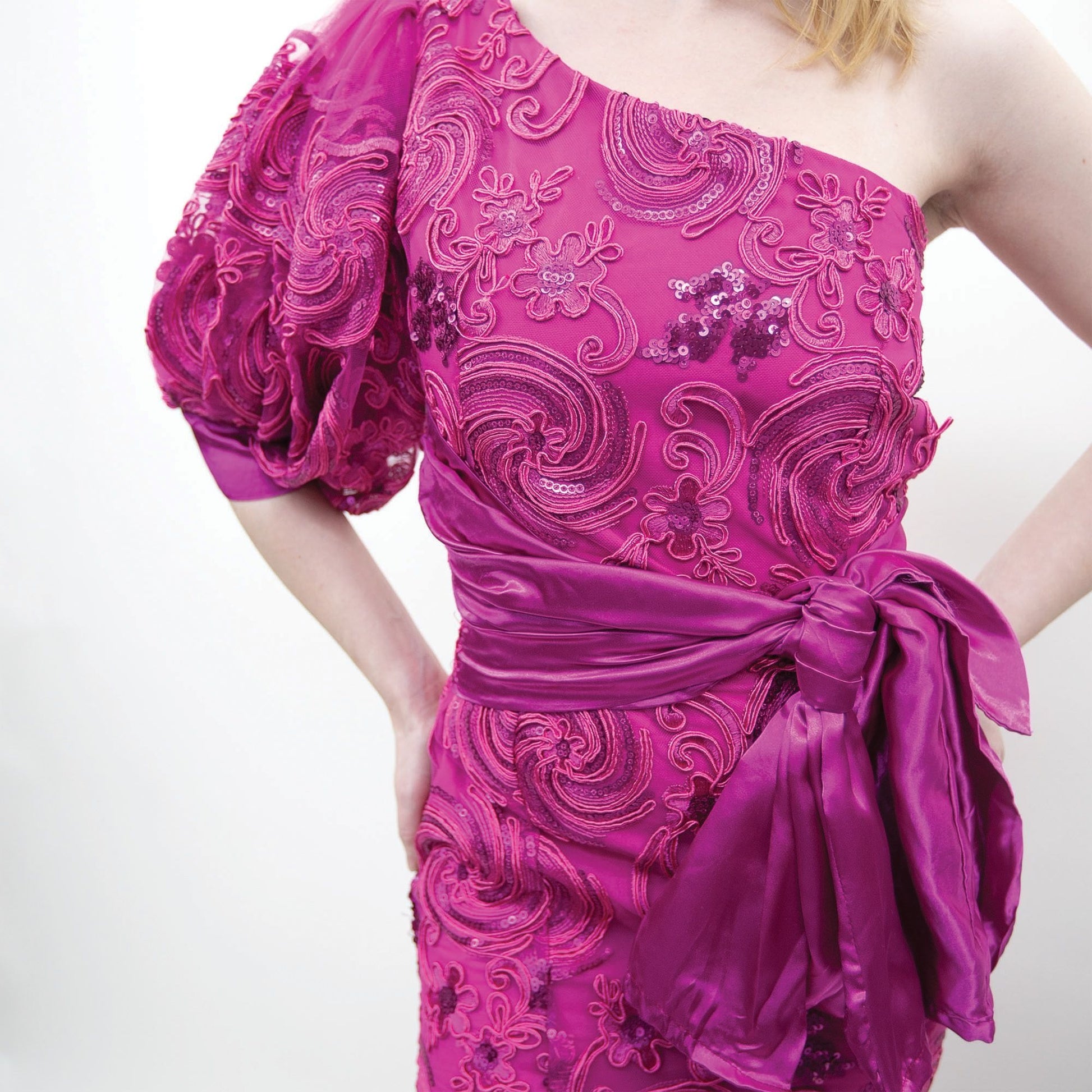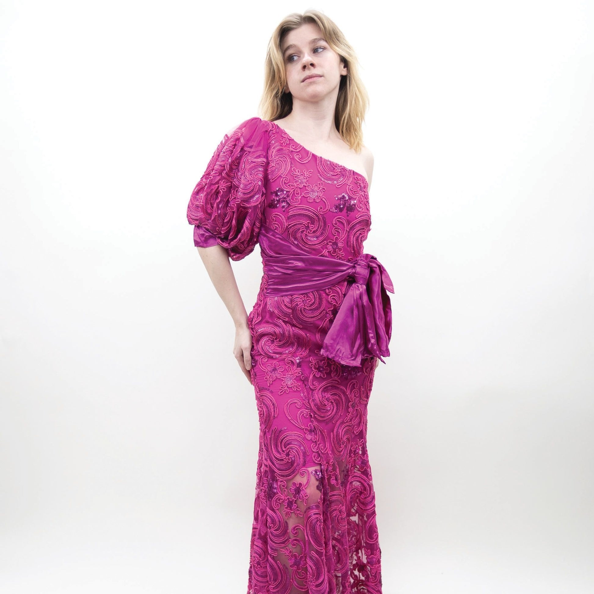 80s Handmade Fuchsia One Sleeve Gown