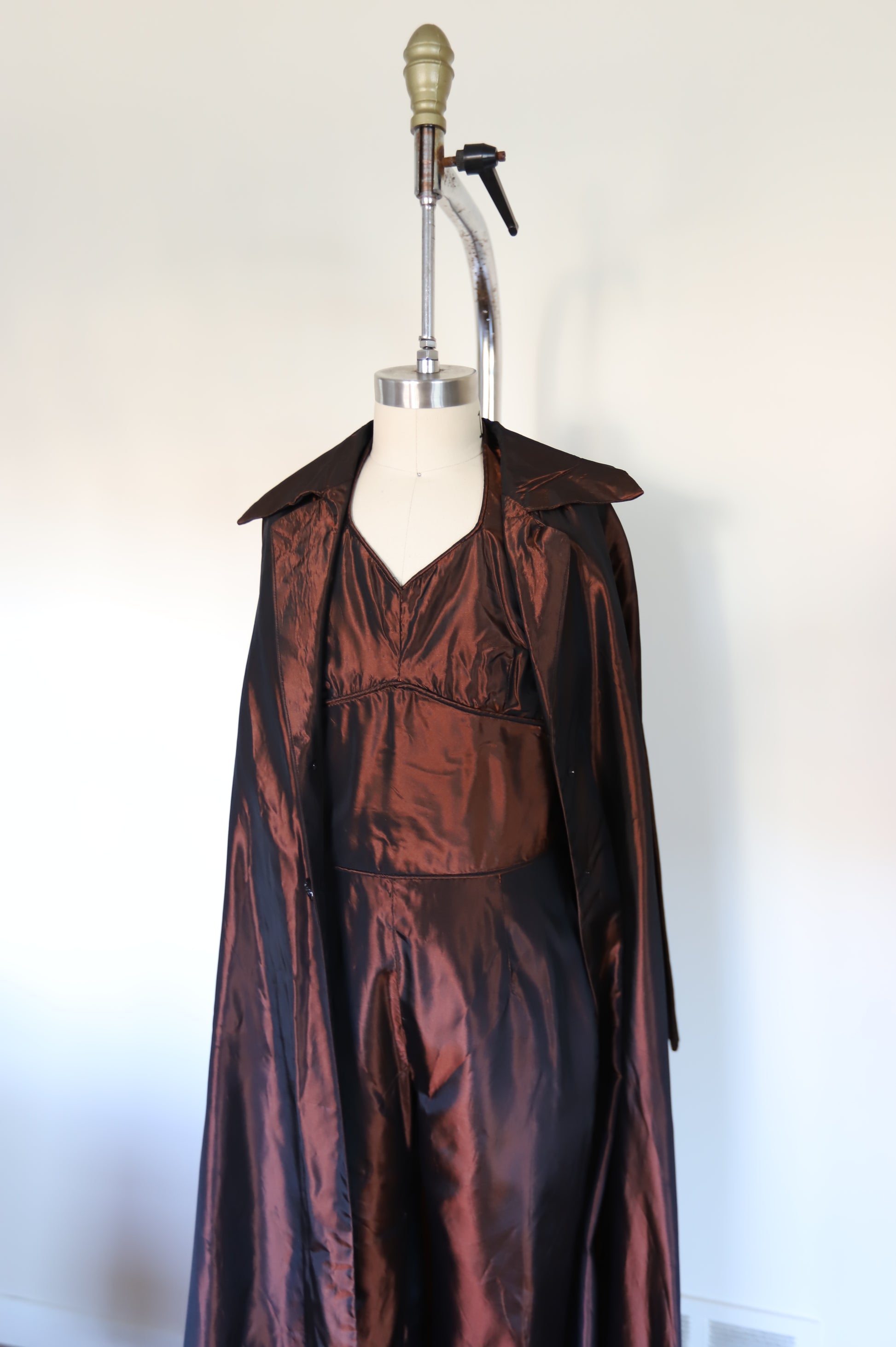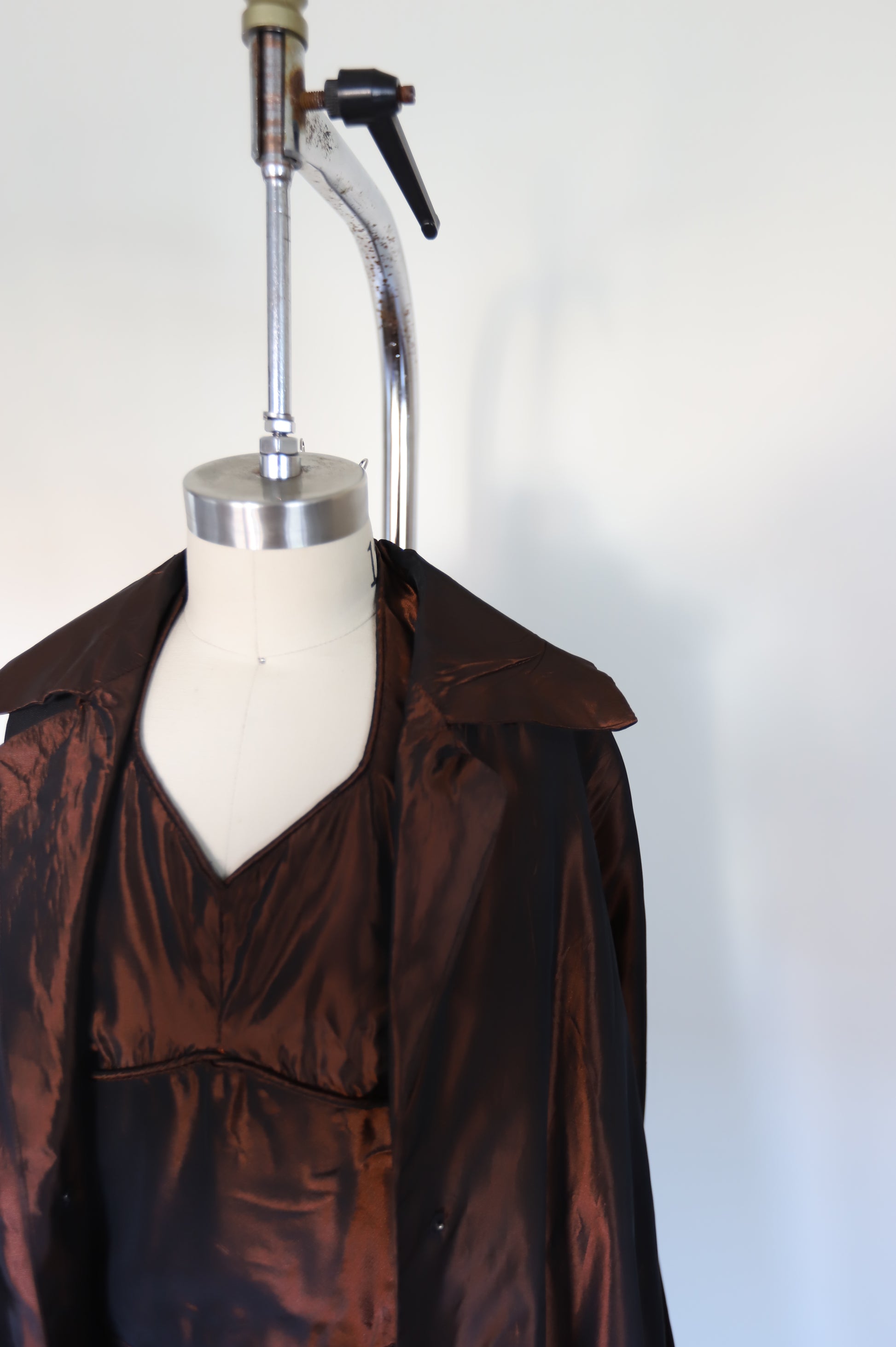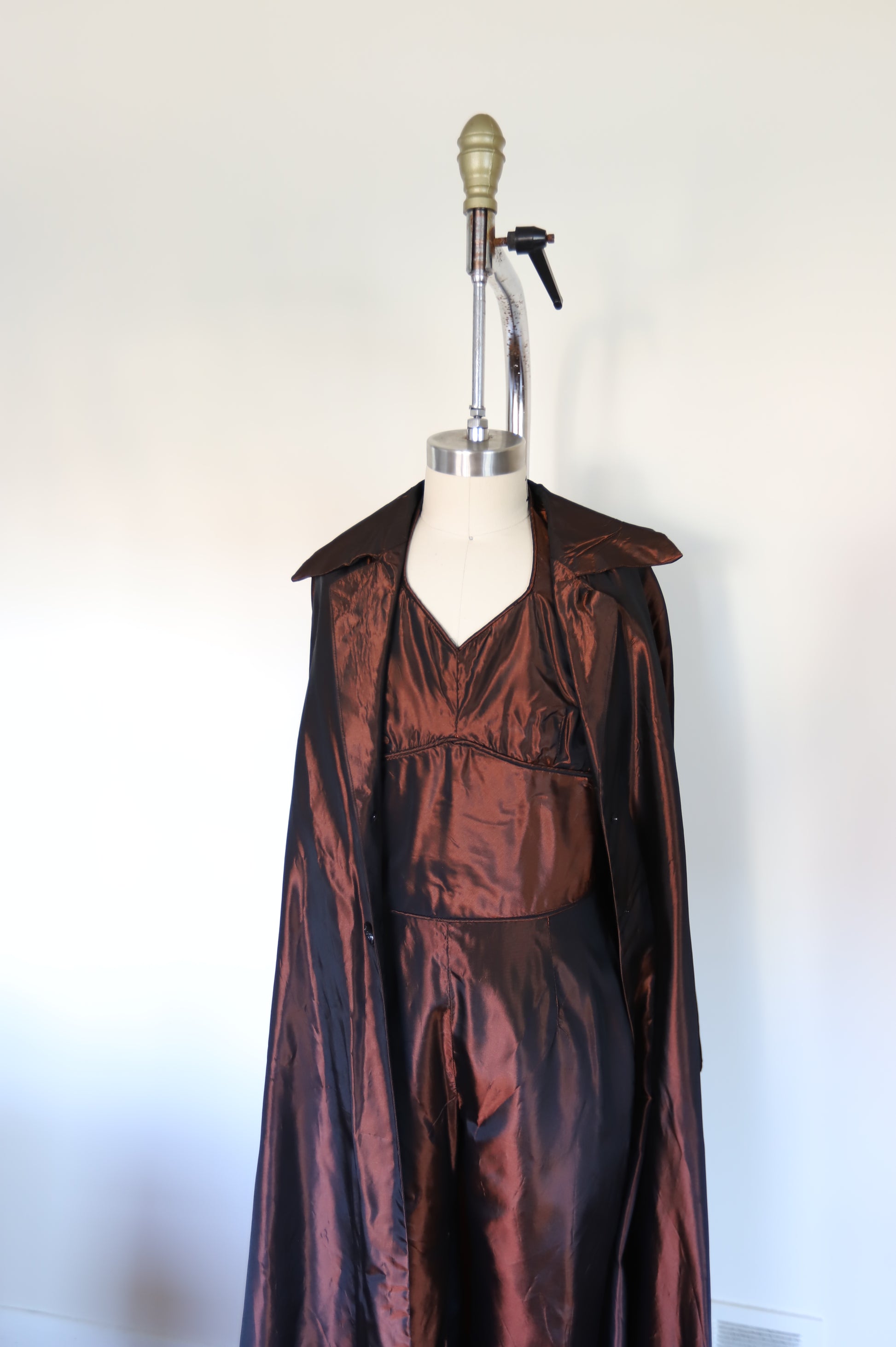 80s Vintage Bronze Taffeta Jumpsuit With Swing Jacket