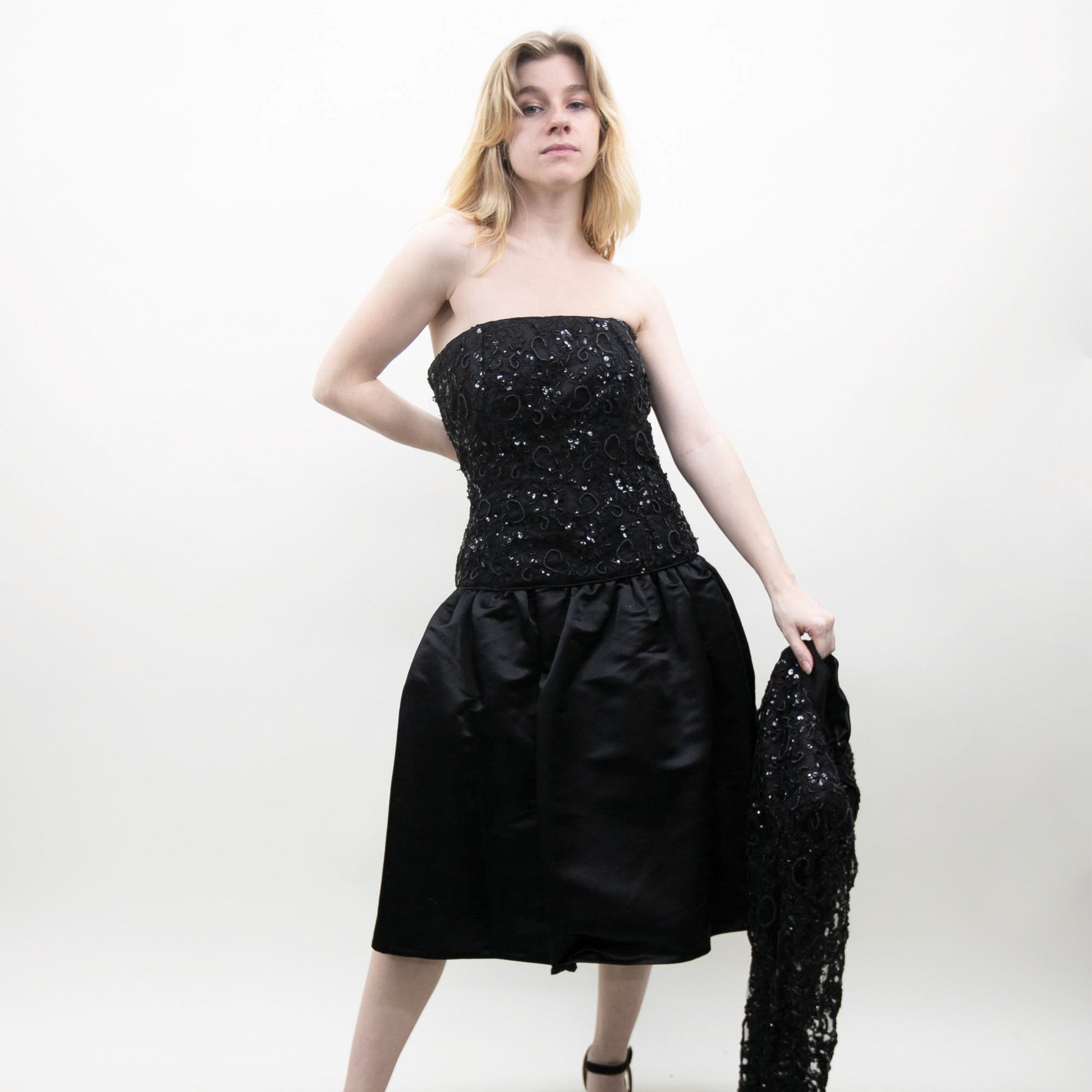 Black 80s Prom Lace Dress with Jacket